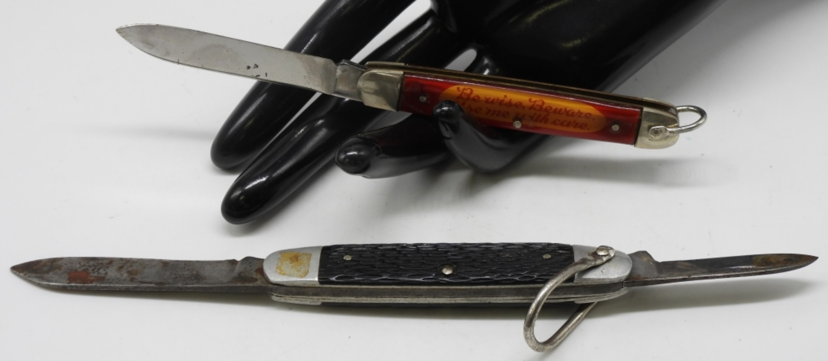 1) Brownie (Be wise, Beware, Use me with care.) 2) A double-bladed