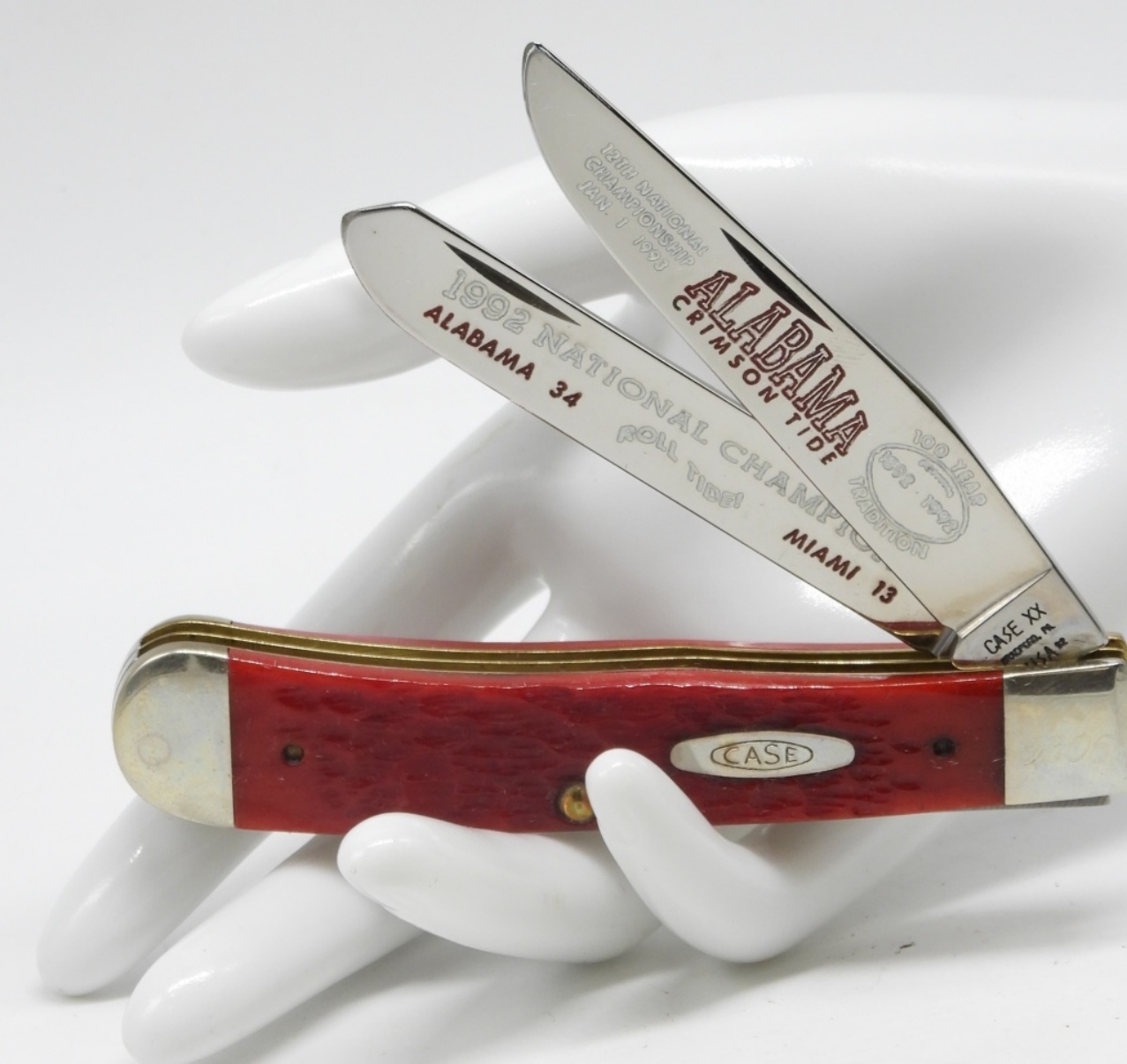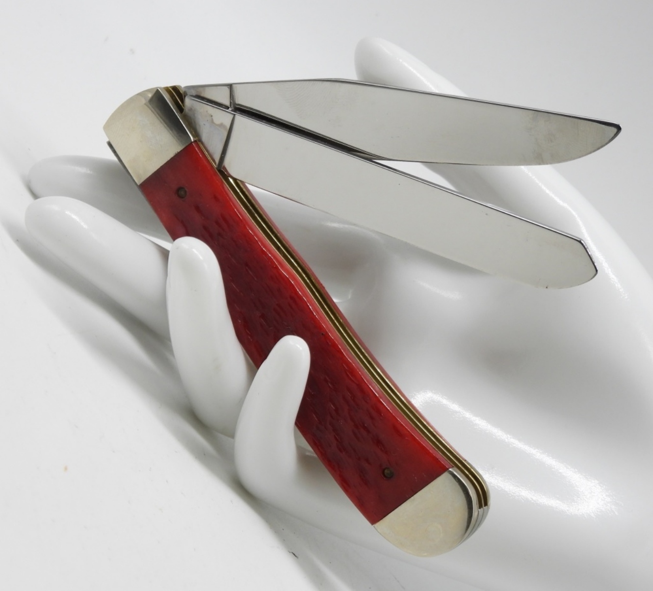 Trapper knife in a hard red case