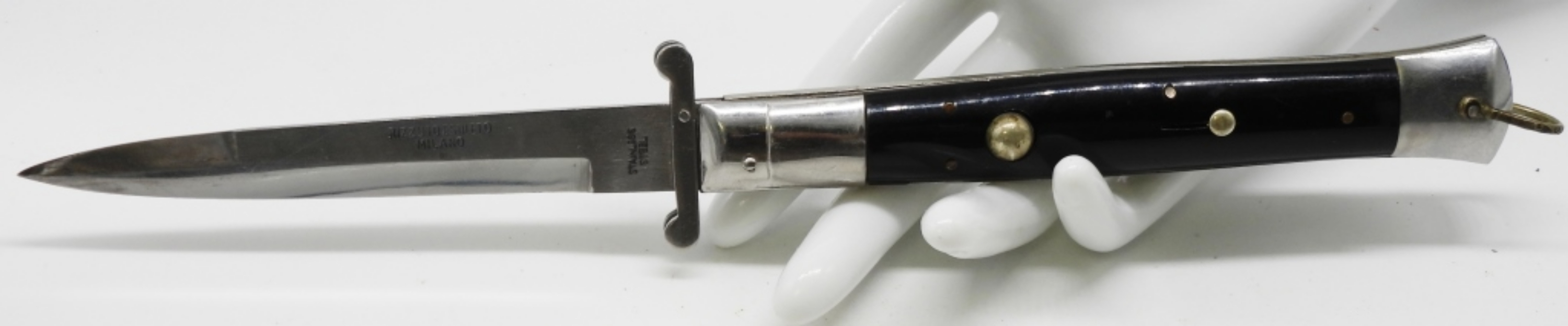 Stainless Steel. Button Release Black