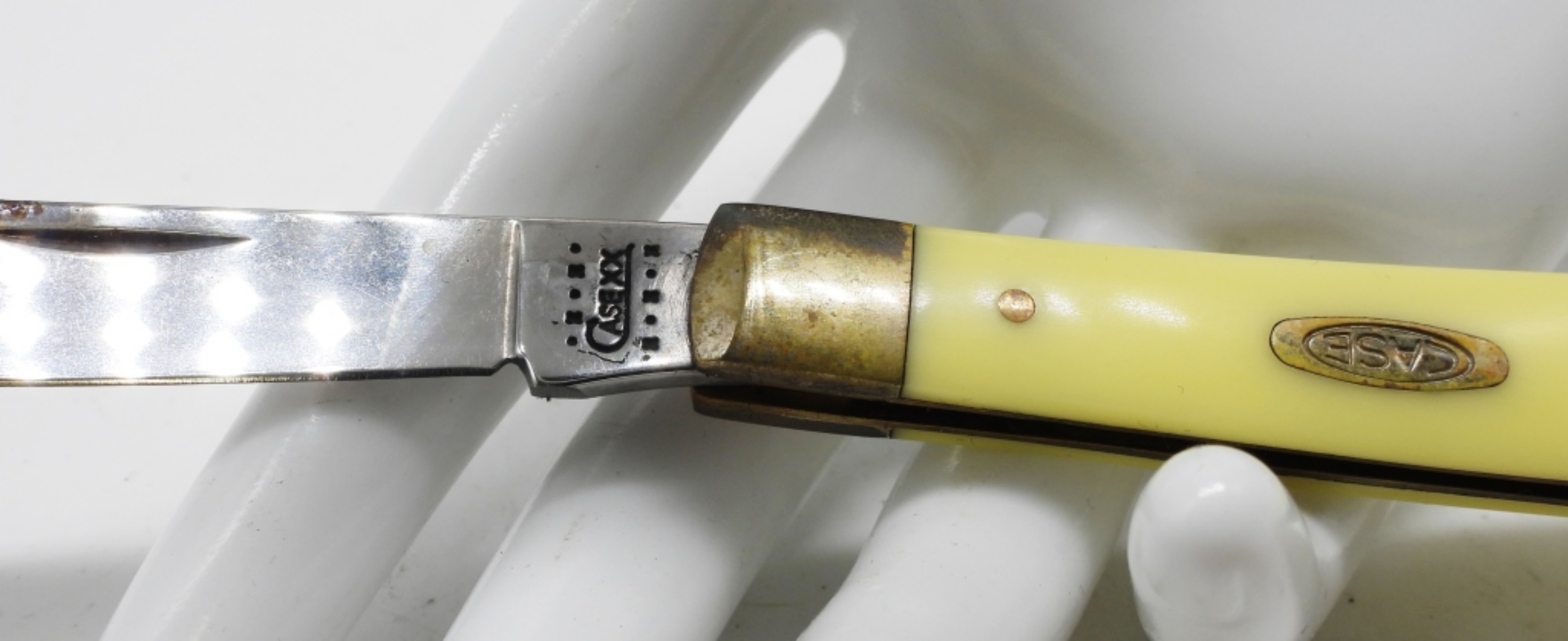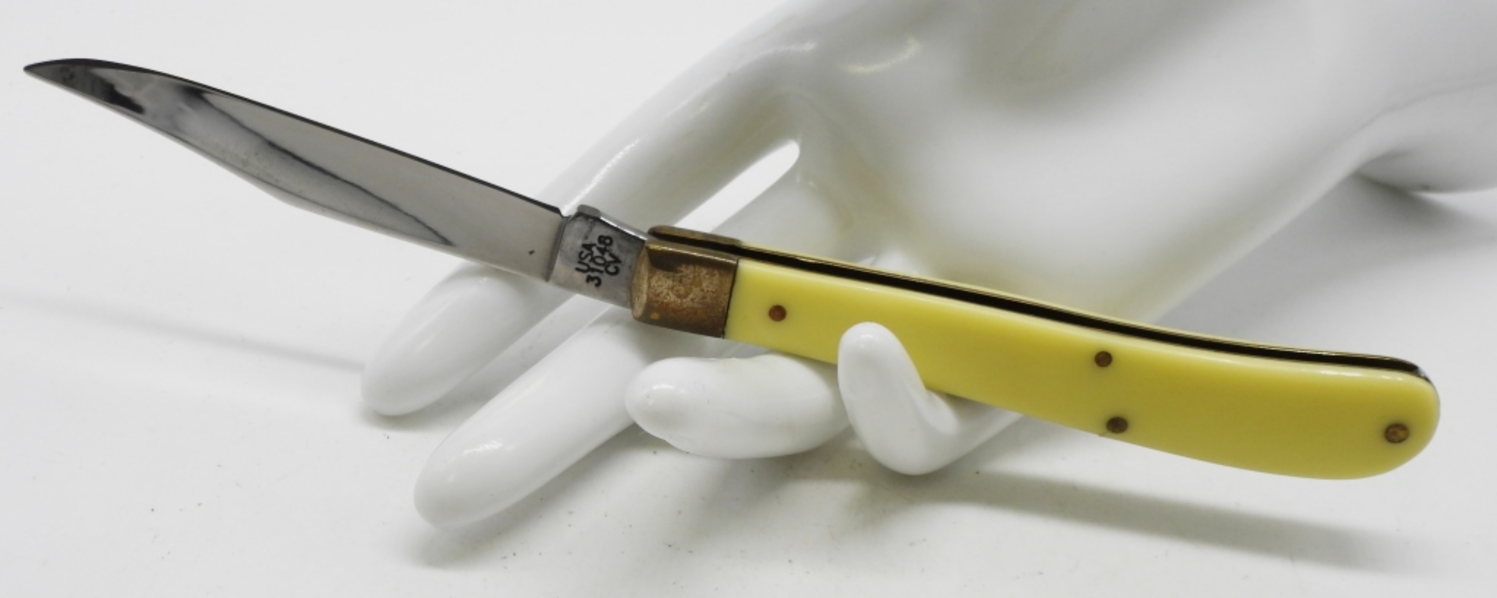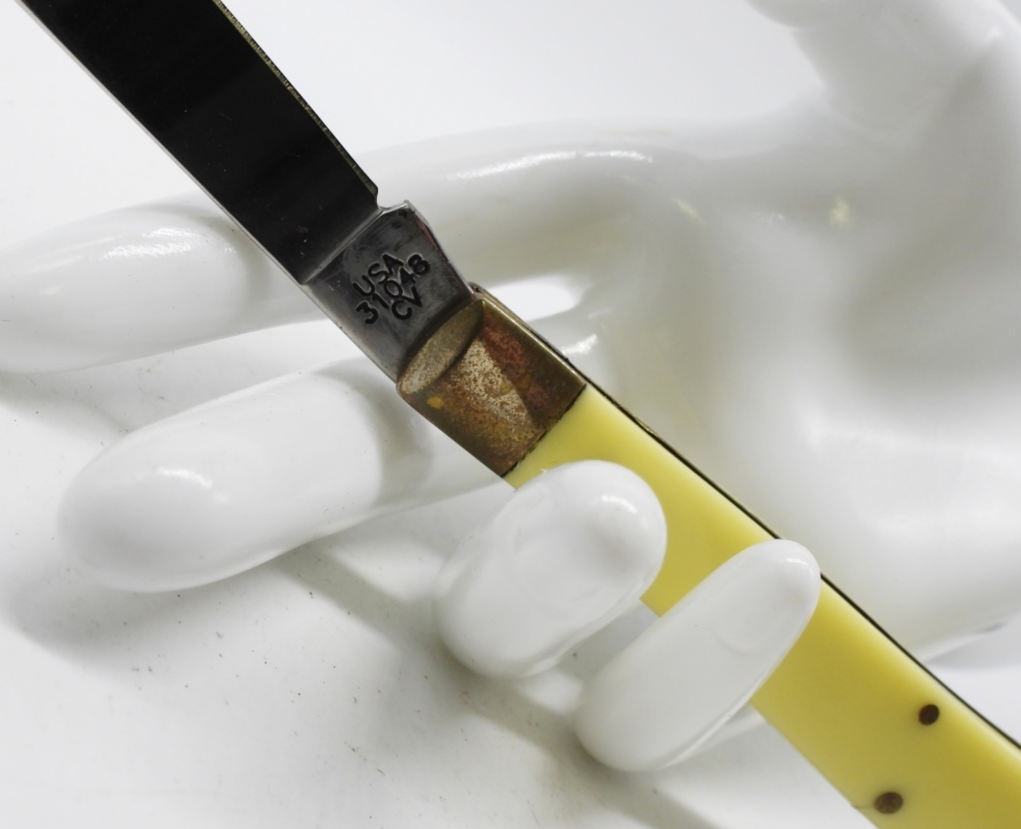 Trapper Yellow Delrin Carbon Steel Pocket Knives small spot of rust on knife