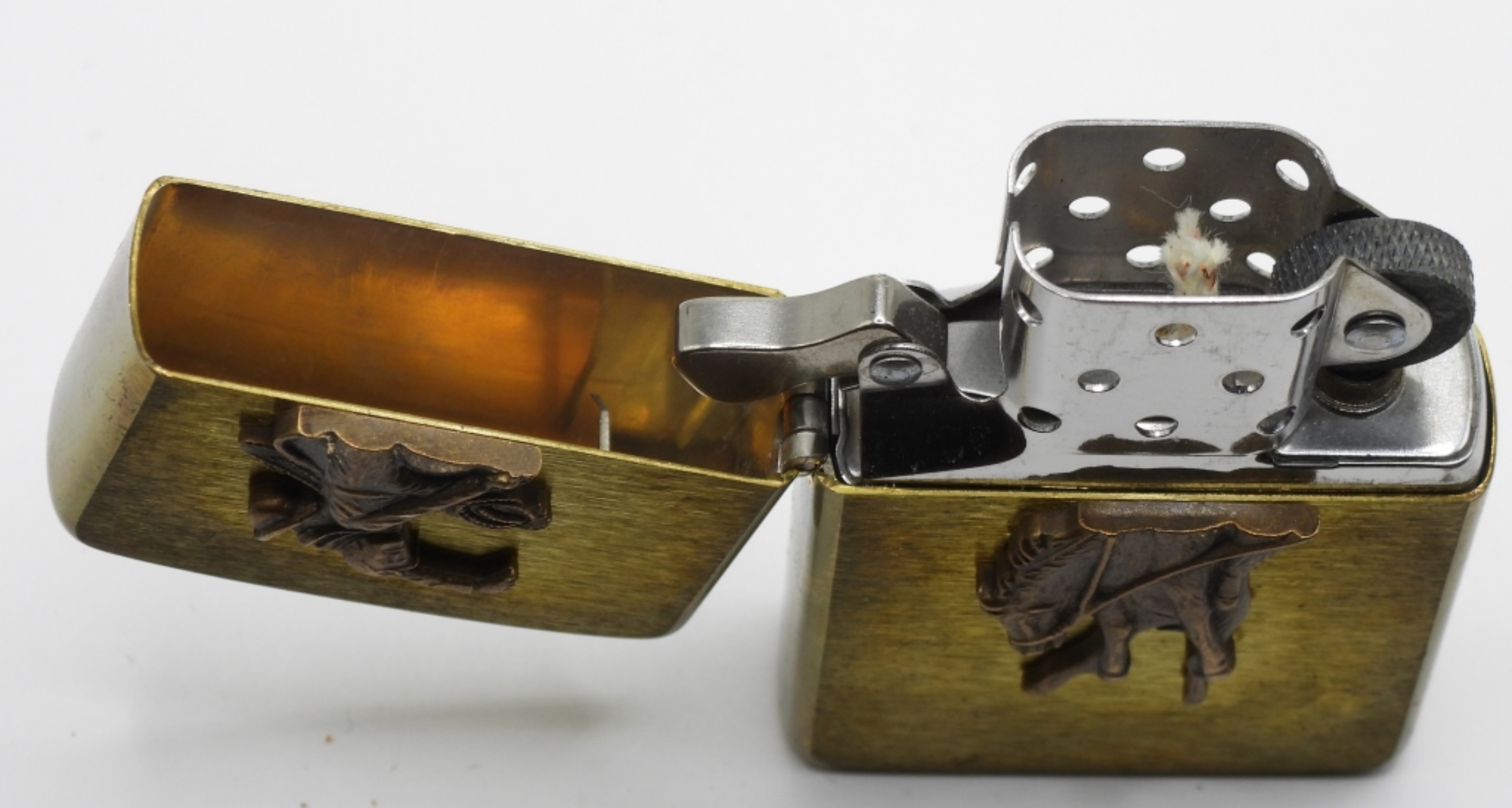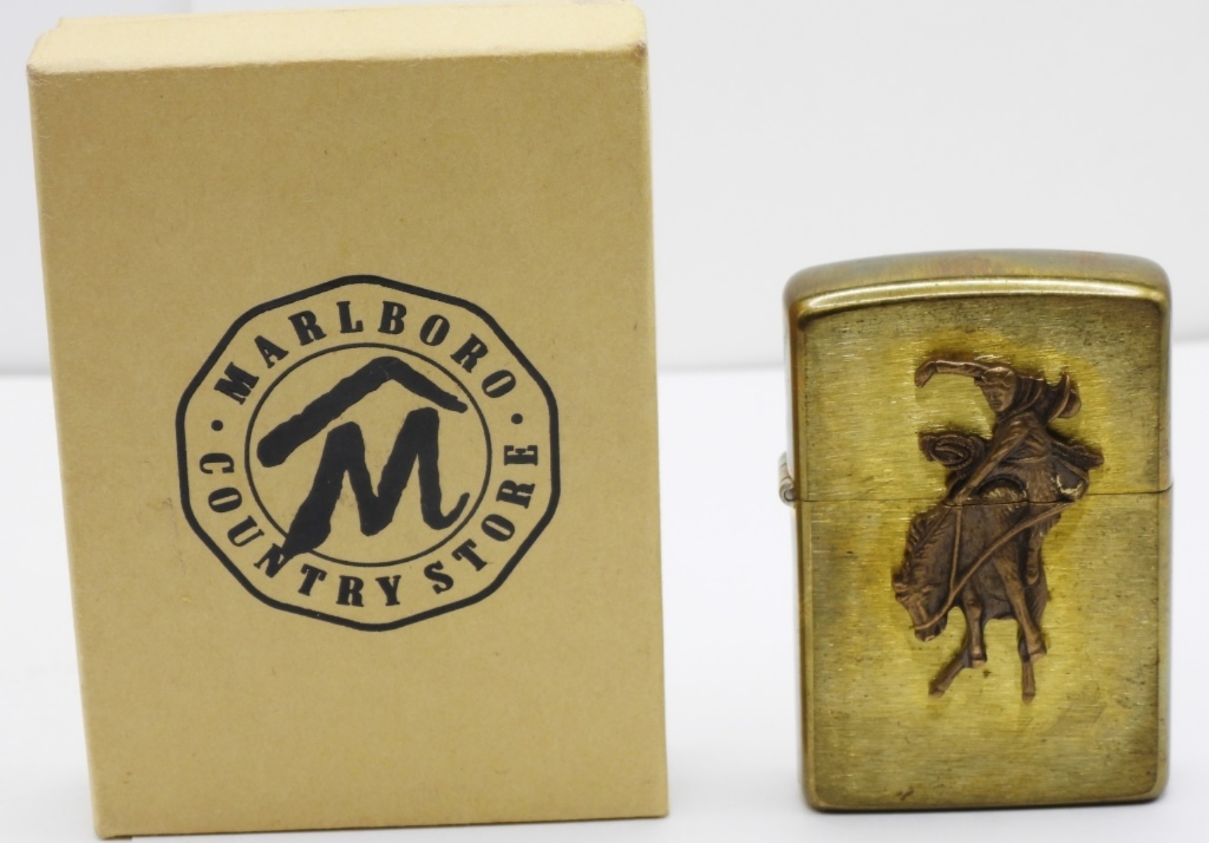 Brass case. Unfired. Riding bull emblem. Comes with its original Marlboro Country Store box.