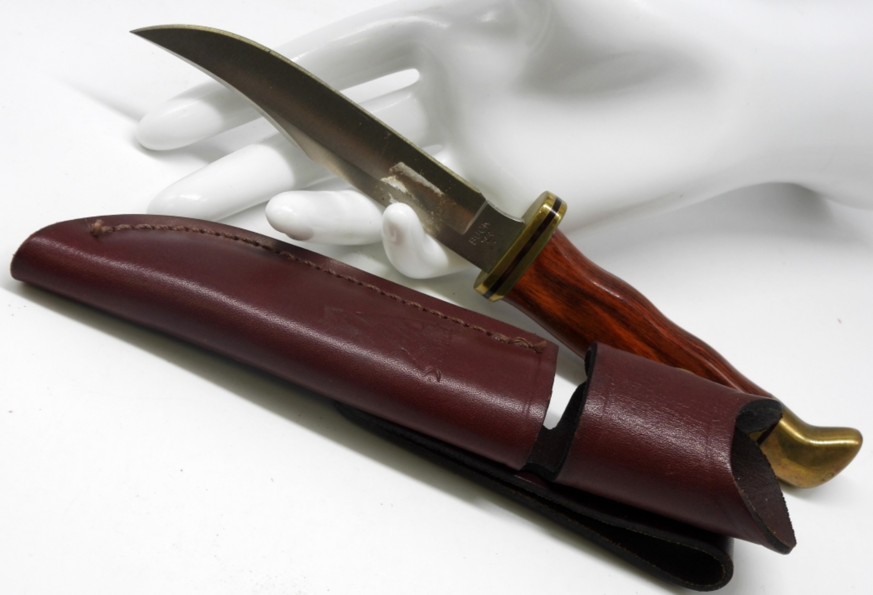 With a leather sheath