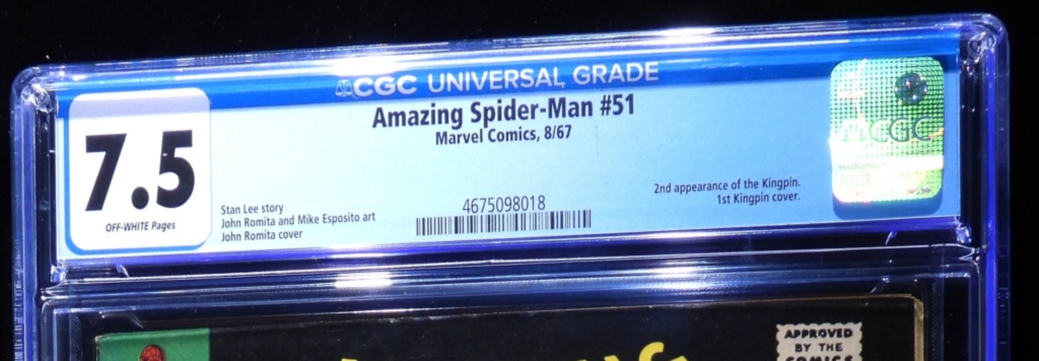 CGC 7.5 Off-white pages. Marvel Comics. 1967 2nd appearance of Kingpin. 1st Kingpin cover