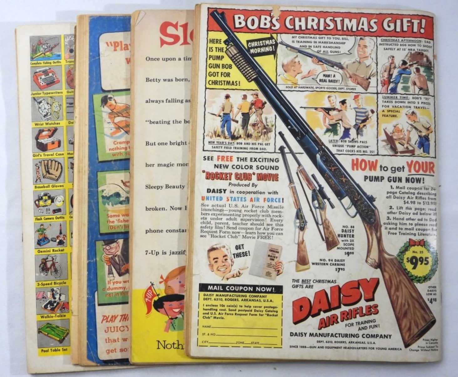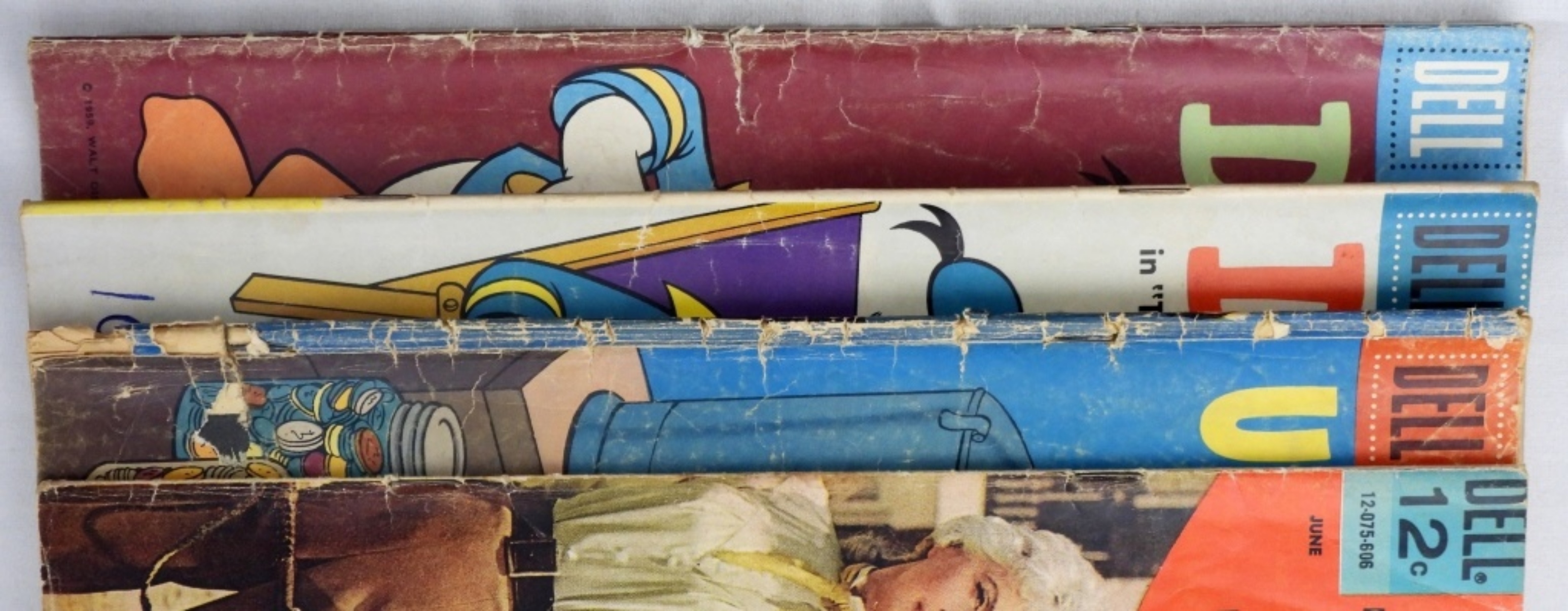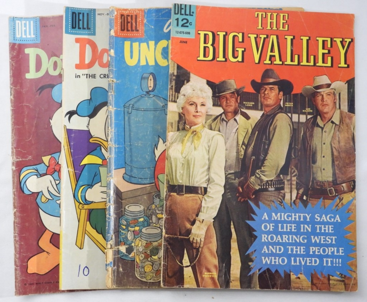 (3) Walt Disney’s Donald Duck #s 56, & 69, Uncle Scrooge # 15 ( the cover is worn around the edges and spine.) The Big Valley #1