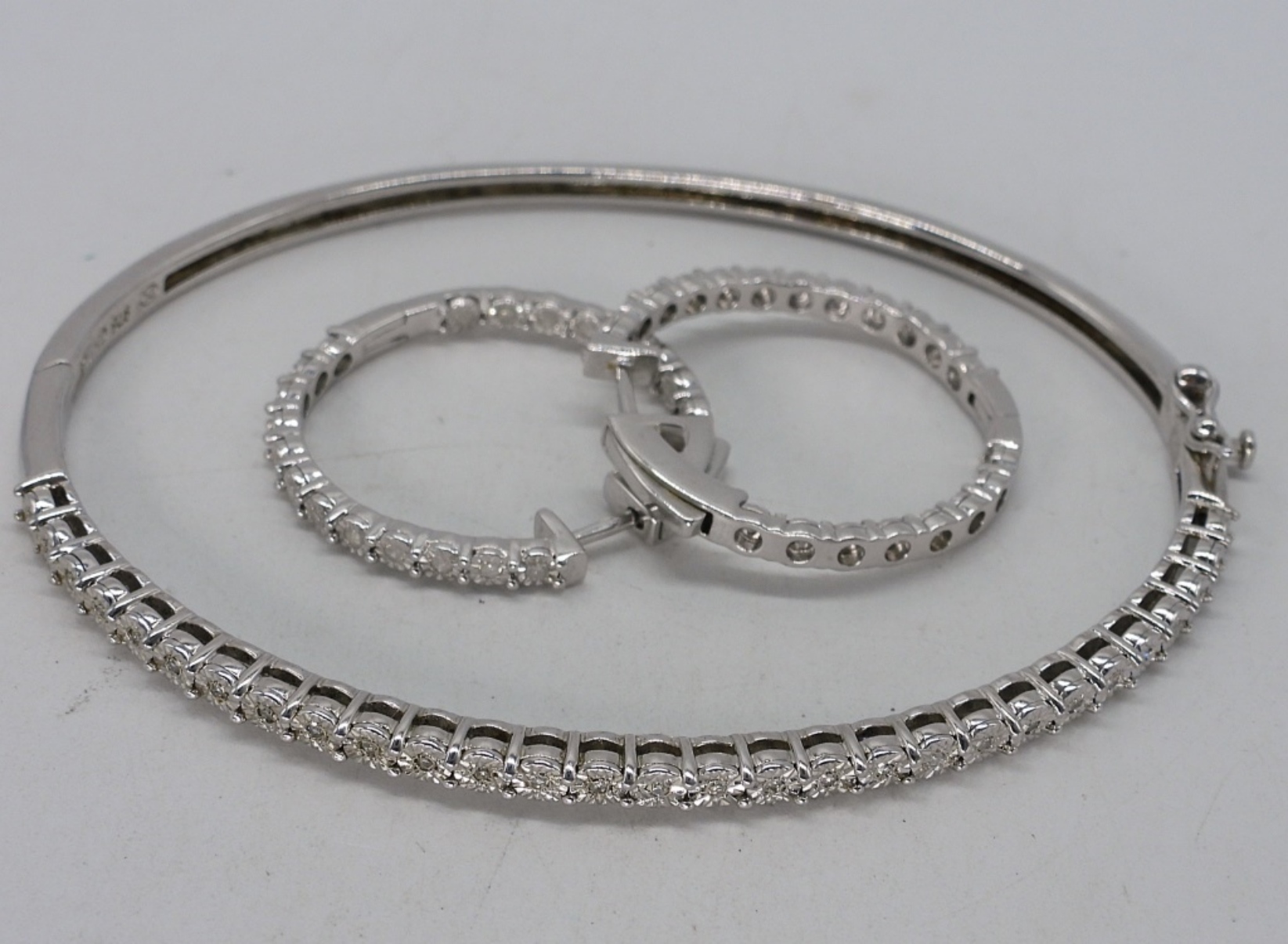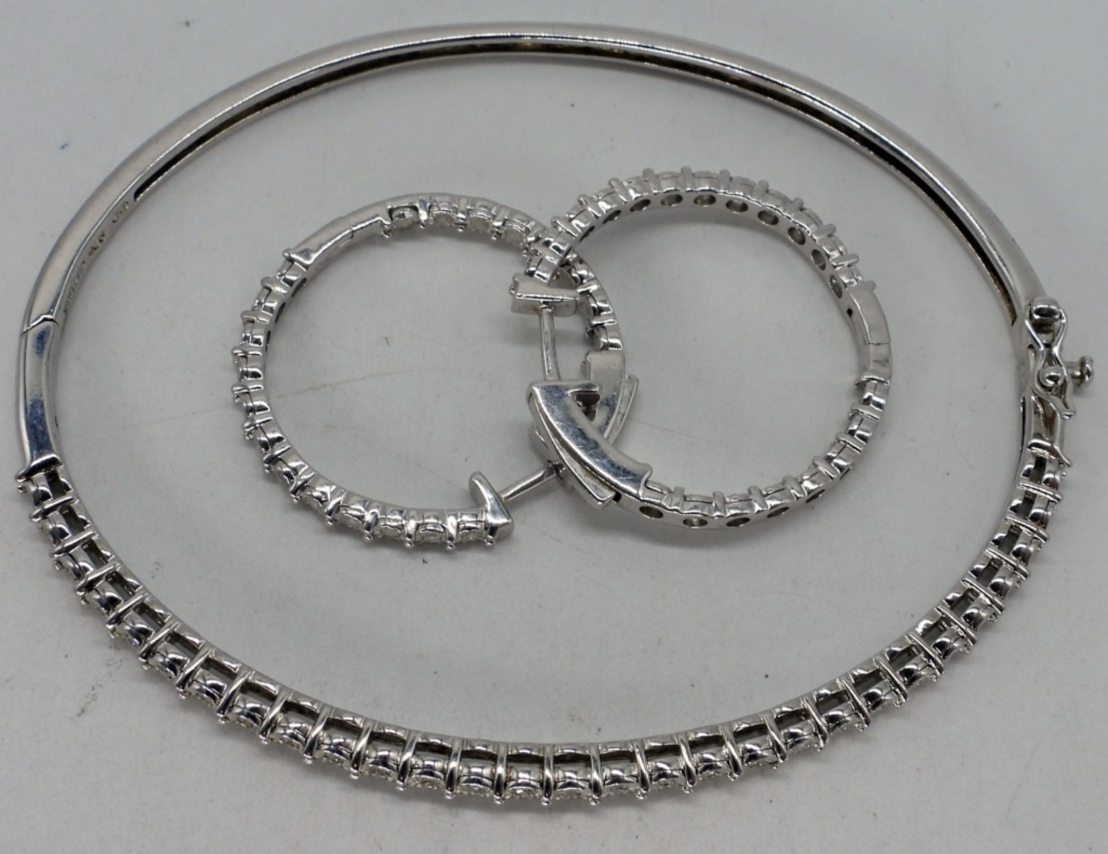 Matching sterling bangle hinged bracelet and pierced earrings. Both marked 925. (11 dwt)