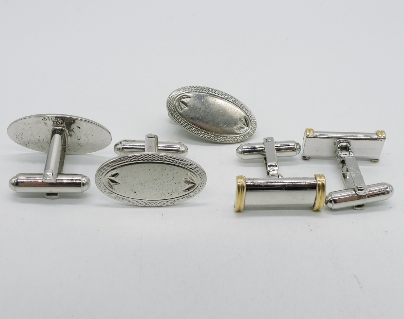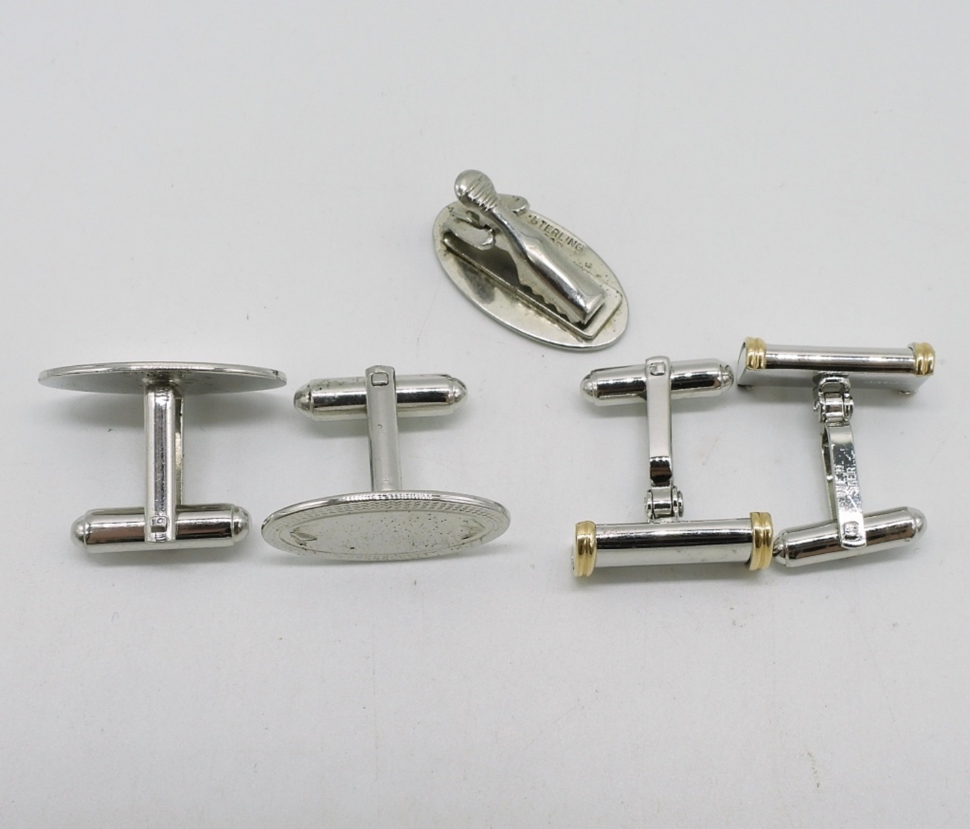 Matching sterling cuff link & tie clip set. Sterling with 14k yellow gold accents cuff links. (17.8 dwt)