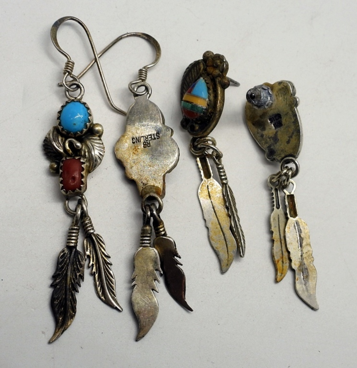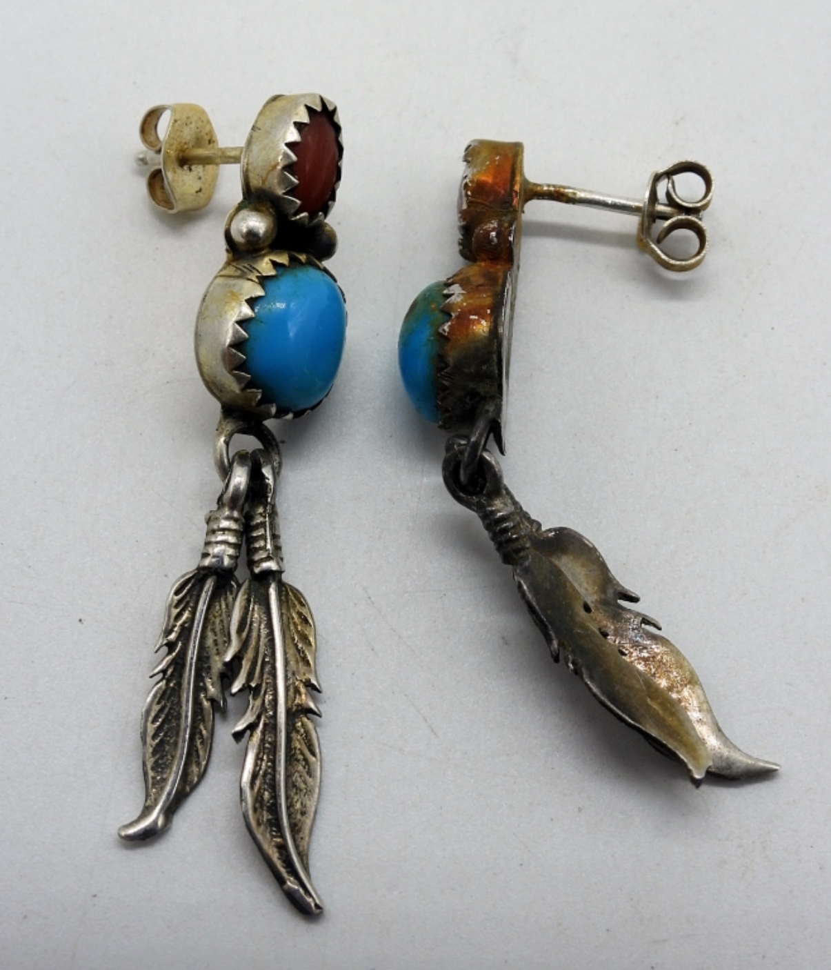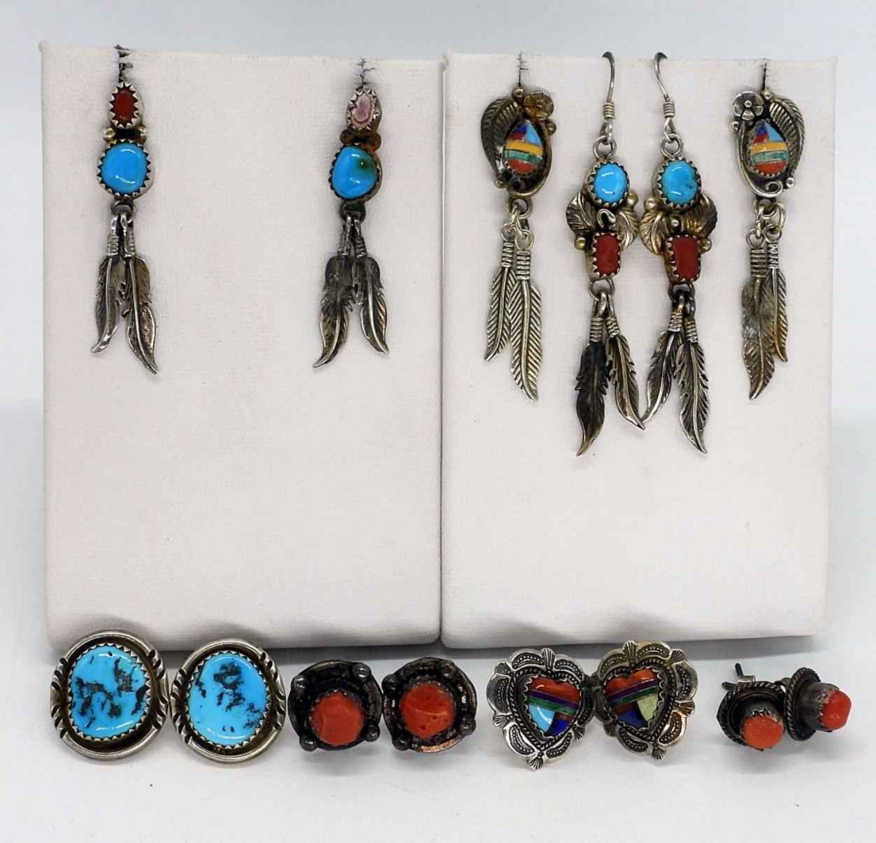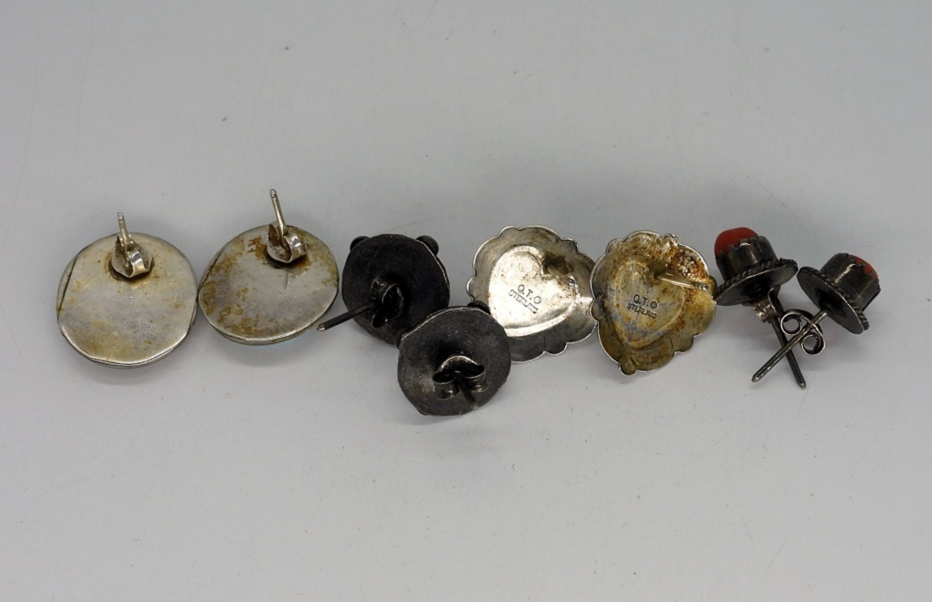 Seven pair of southwest style turquoise pierced earrings. These all need a good cleaning. (18.8 dwt)