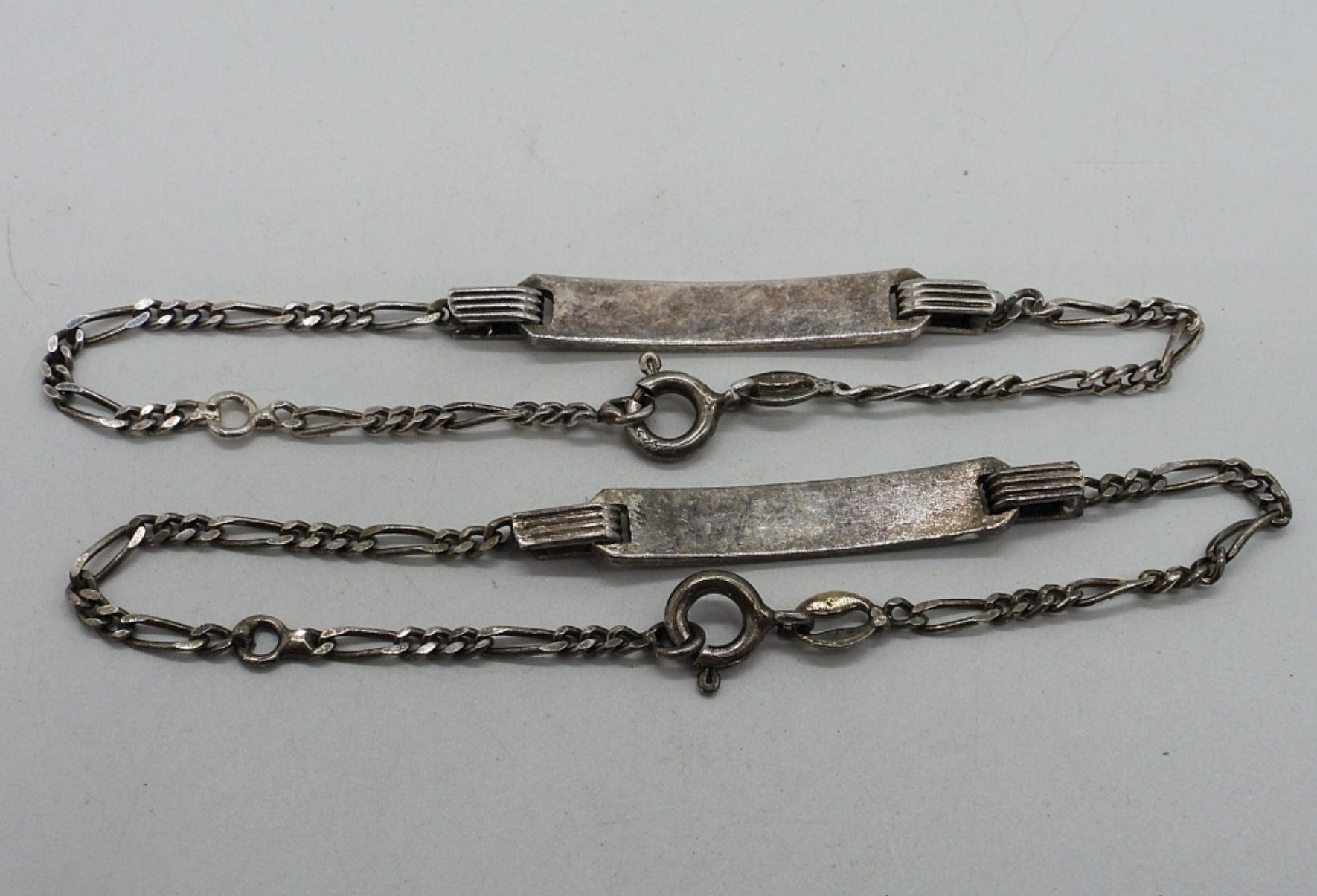 Two antique sterling unengraved ID bracelets. Both 6″ long. (4 dwt)