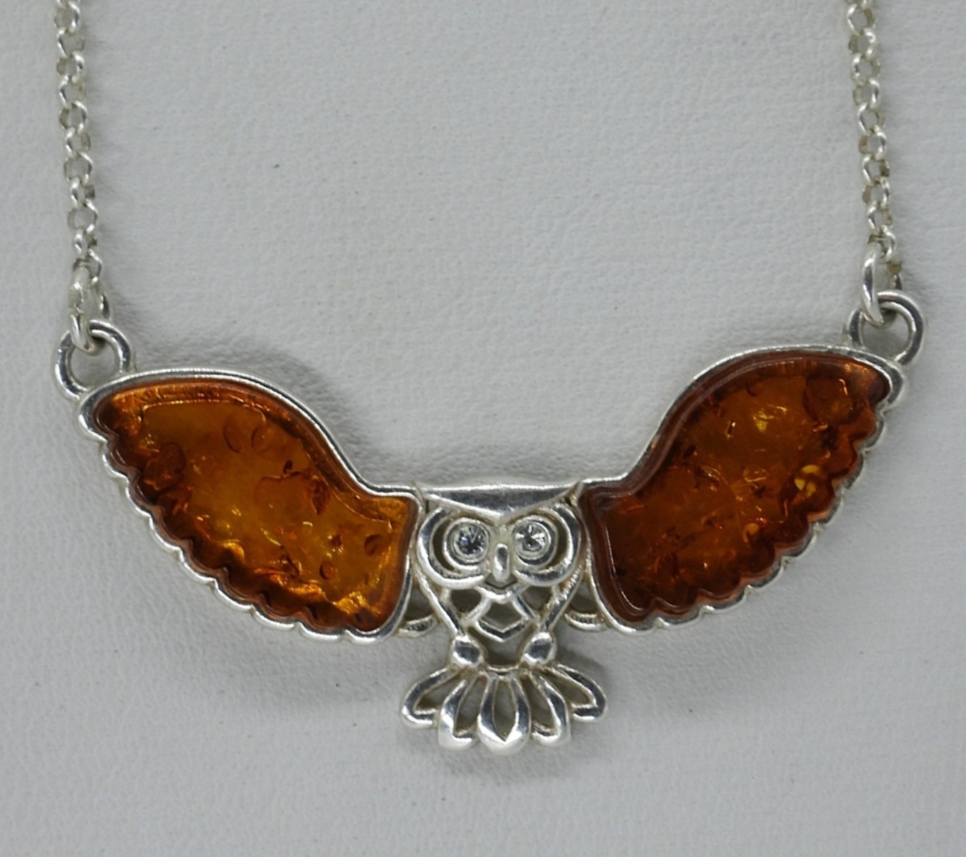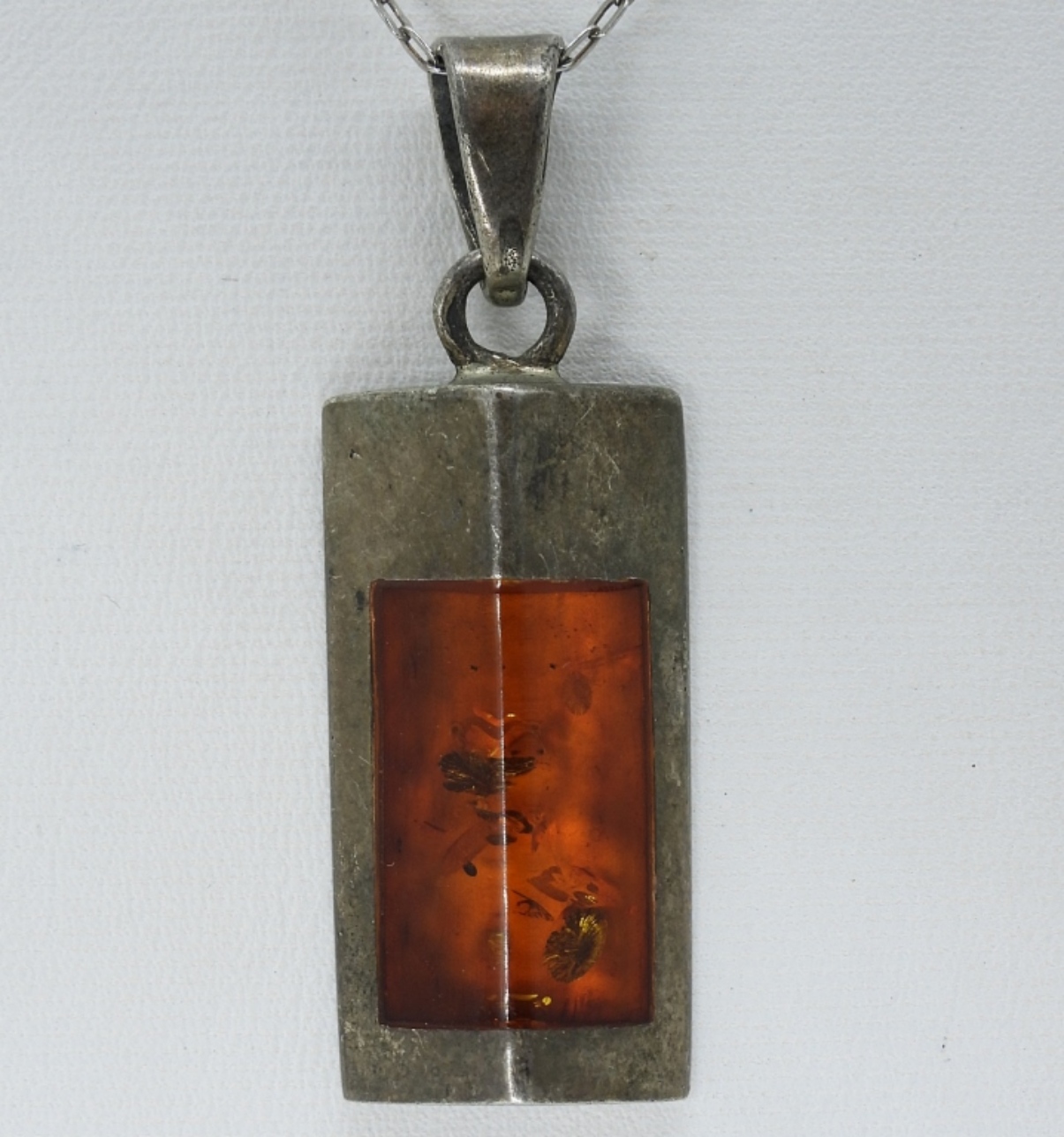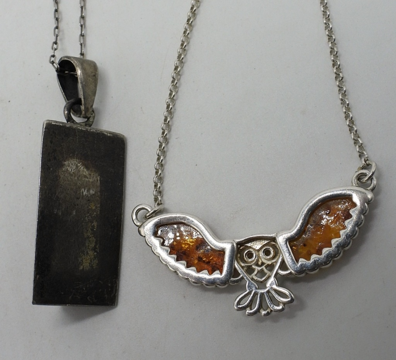 Two sterling necklaces with Amber gemstones. Both 18″ long chains. (8 dwt)