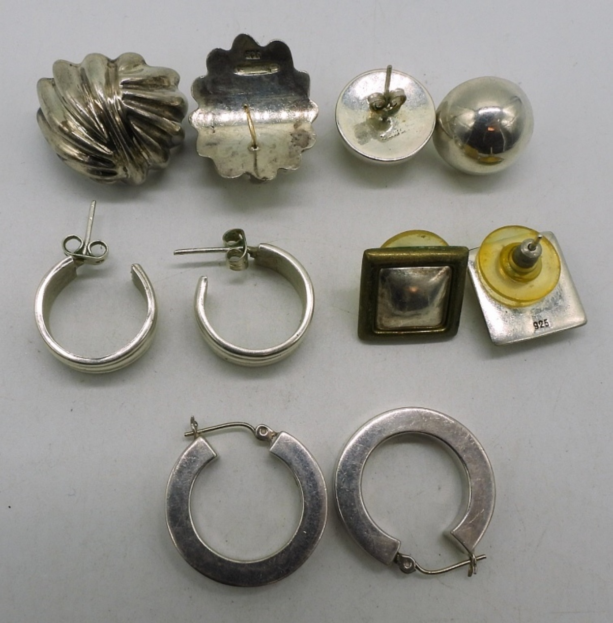 Five pair of sterling pierced earrings. (25.9 dwt)