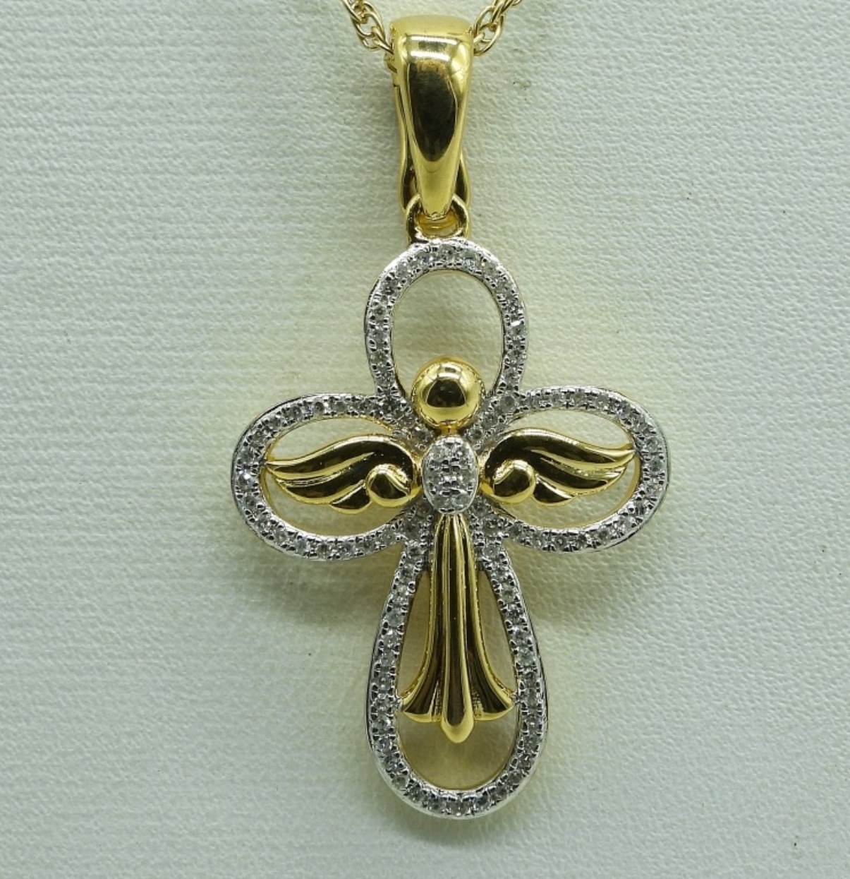 Three sterling necklaces, two are gold toned. All are 18″ long chains. Very pretty! (7 dwt)
