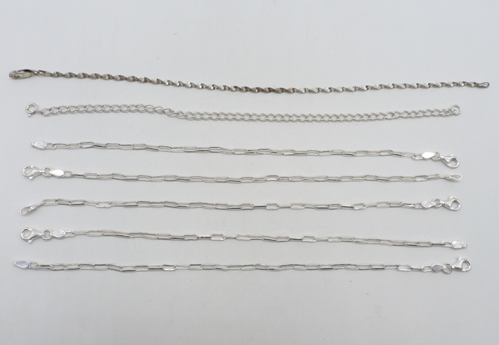 Seven sterling chain bracelets, 7″ & 8″. (9.6 dwt)
