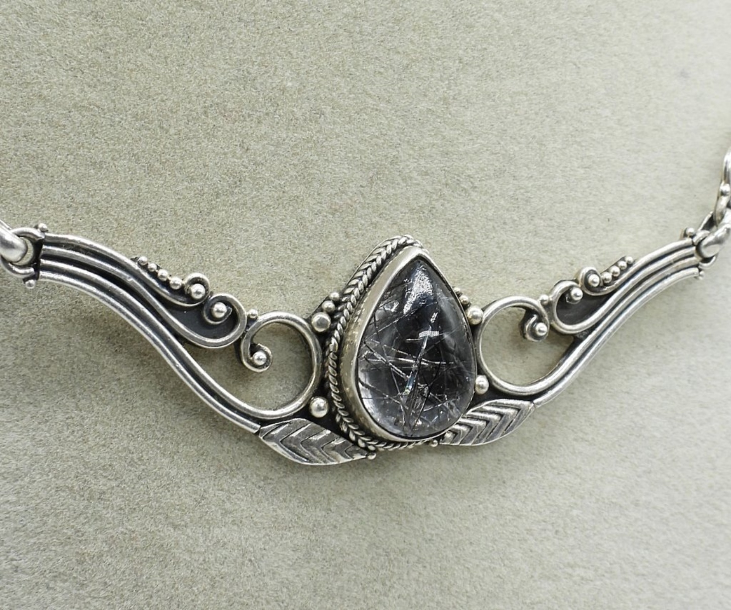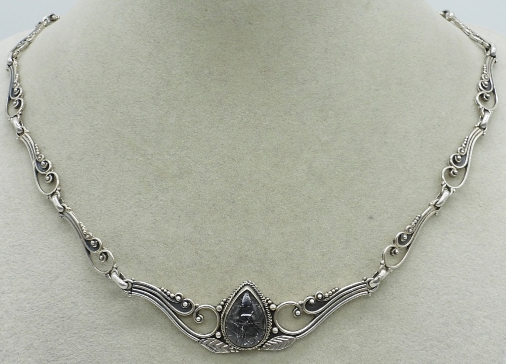 Rutilated Quartz gemstone, sterling necklace, 16″ long. (13.7 dwt)