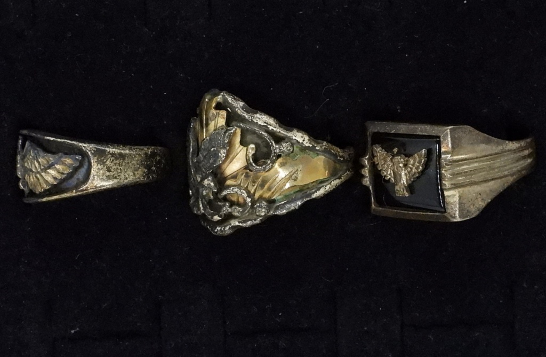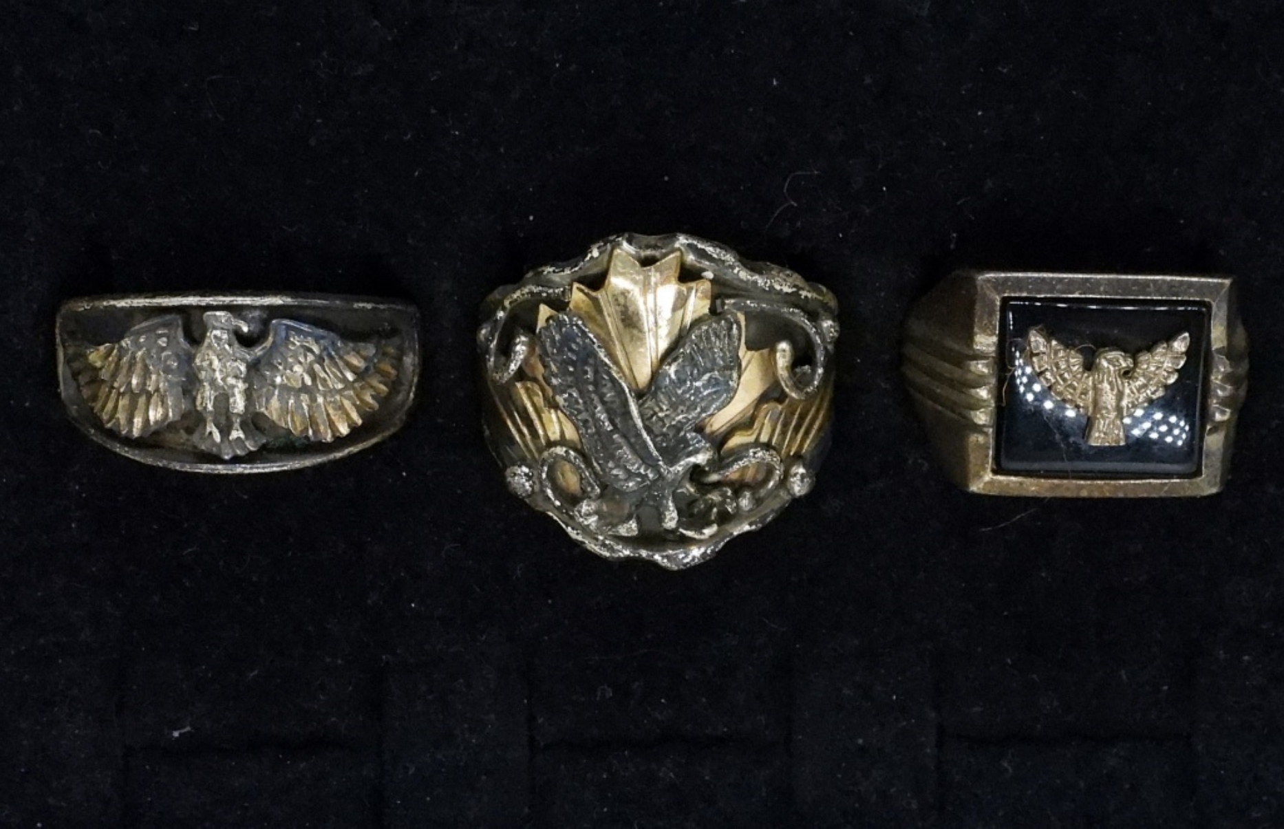 Three sterling mens rings with eagles on them and black onyx. Sizes 11, 12, 13 (16 dwt)