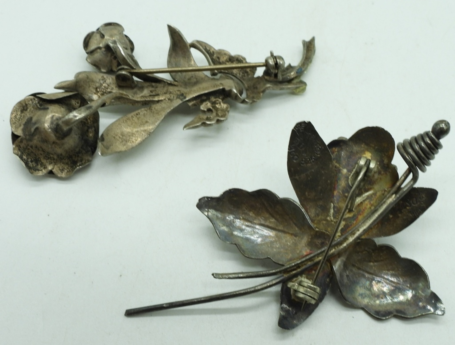 Cini brand, sterling rose shaped brooch, 1.5″ long. Two other sterling flower brooches, 3″ long. (19.8 dwt)