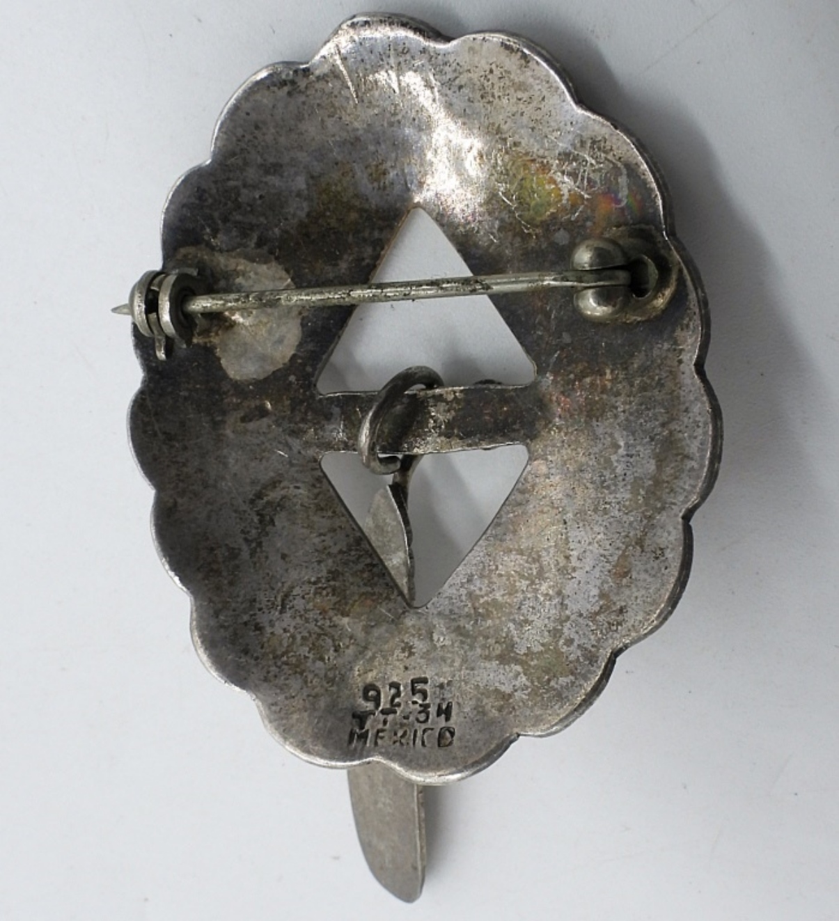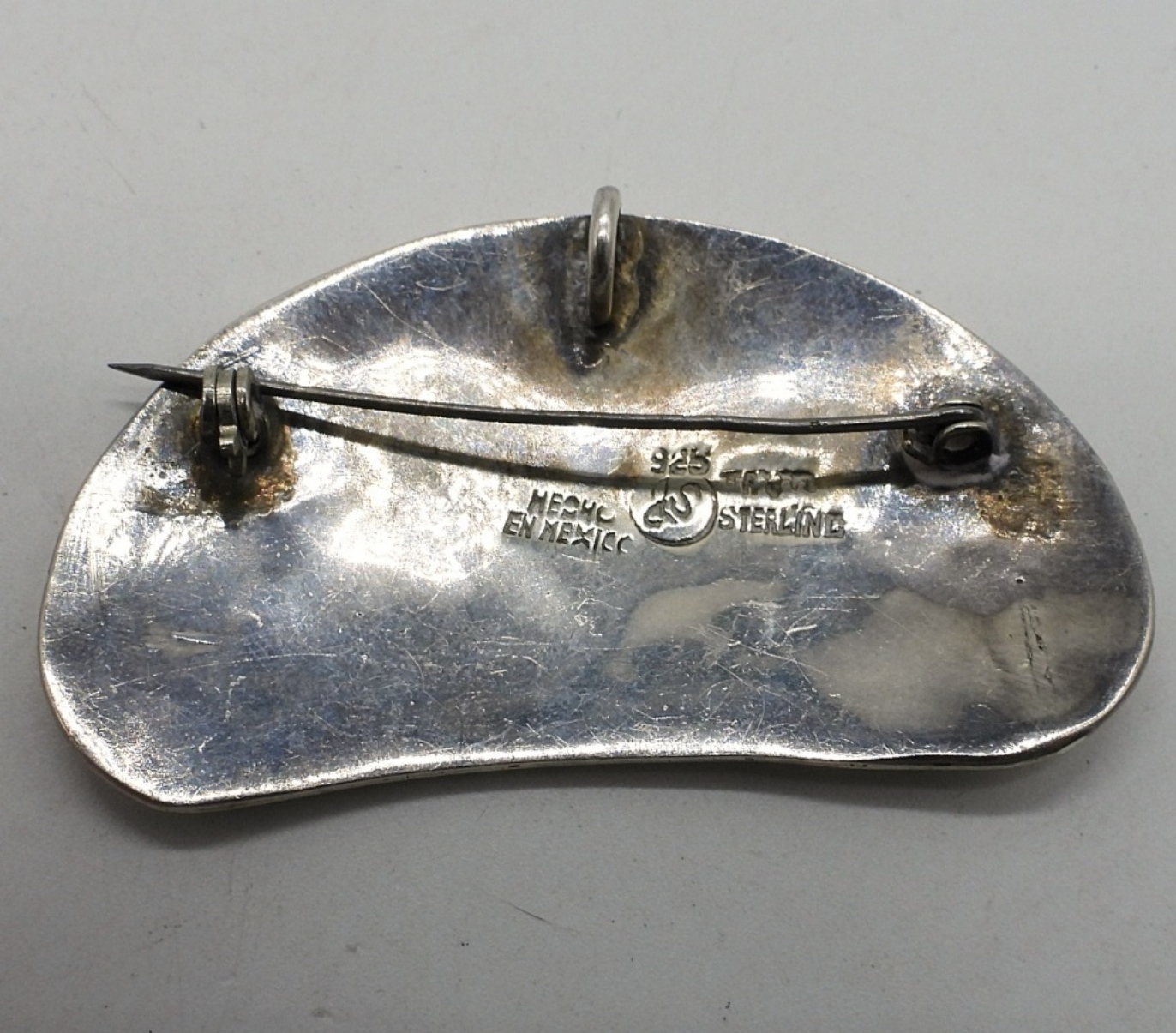 Two cute Mexico sterling brooches, 2″ wide. (17.4 dwt)