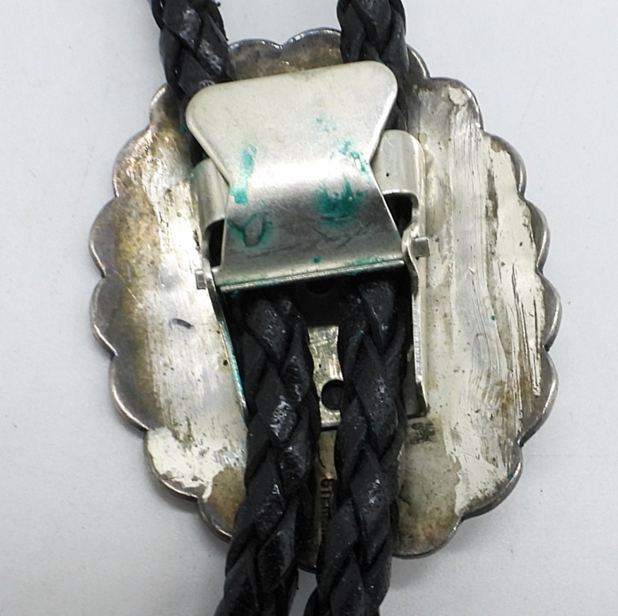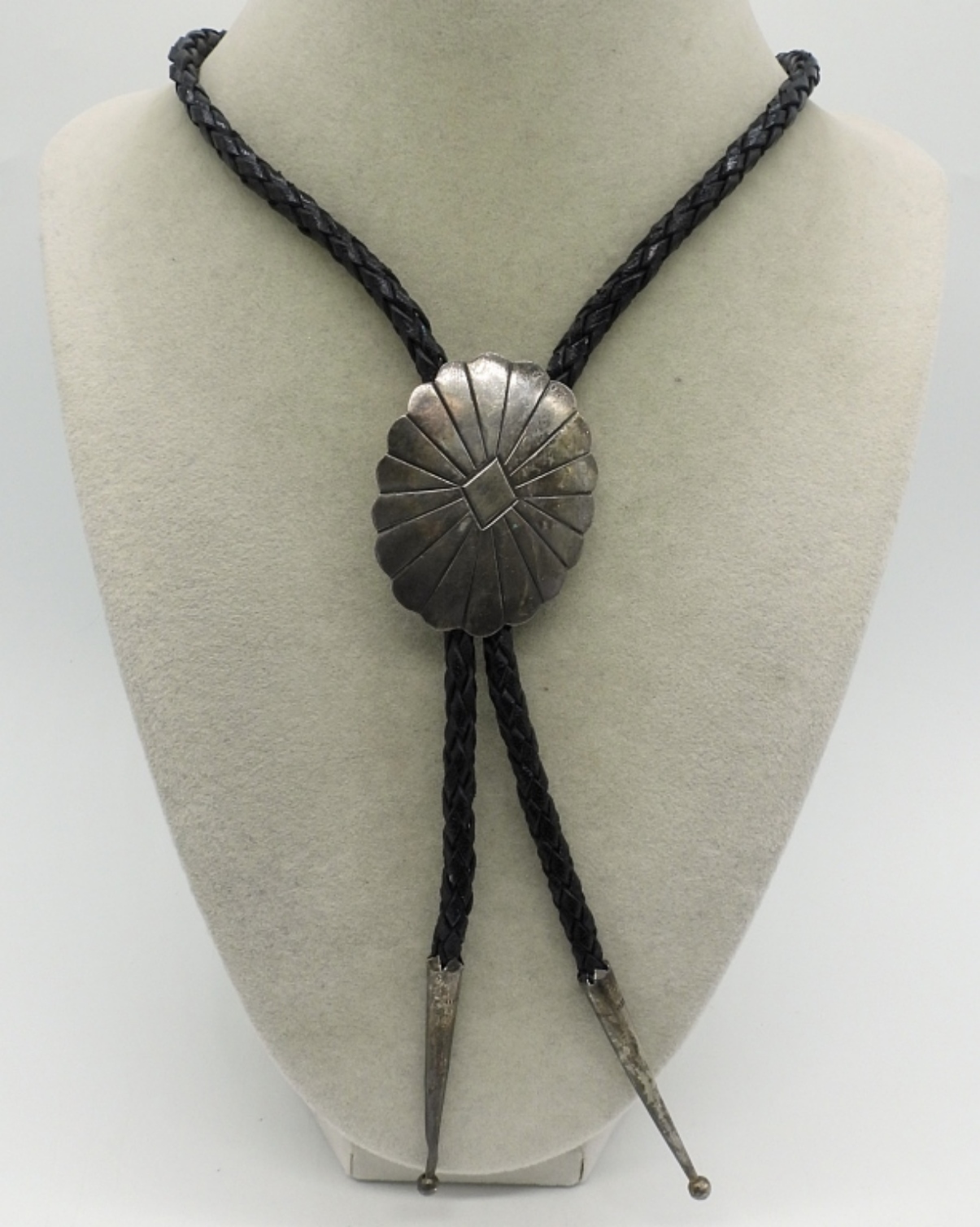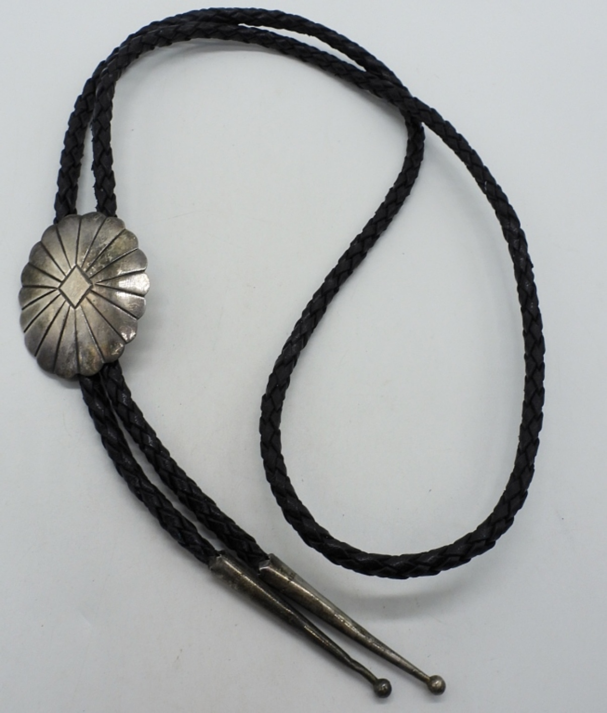 40 inch leather and sterling bolo tie. (7 dwt)