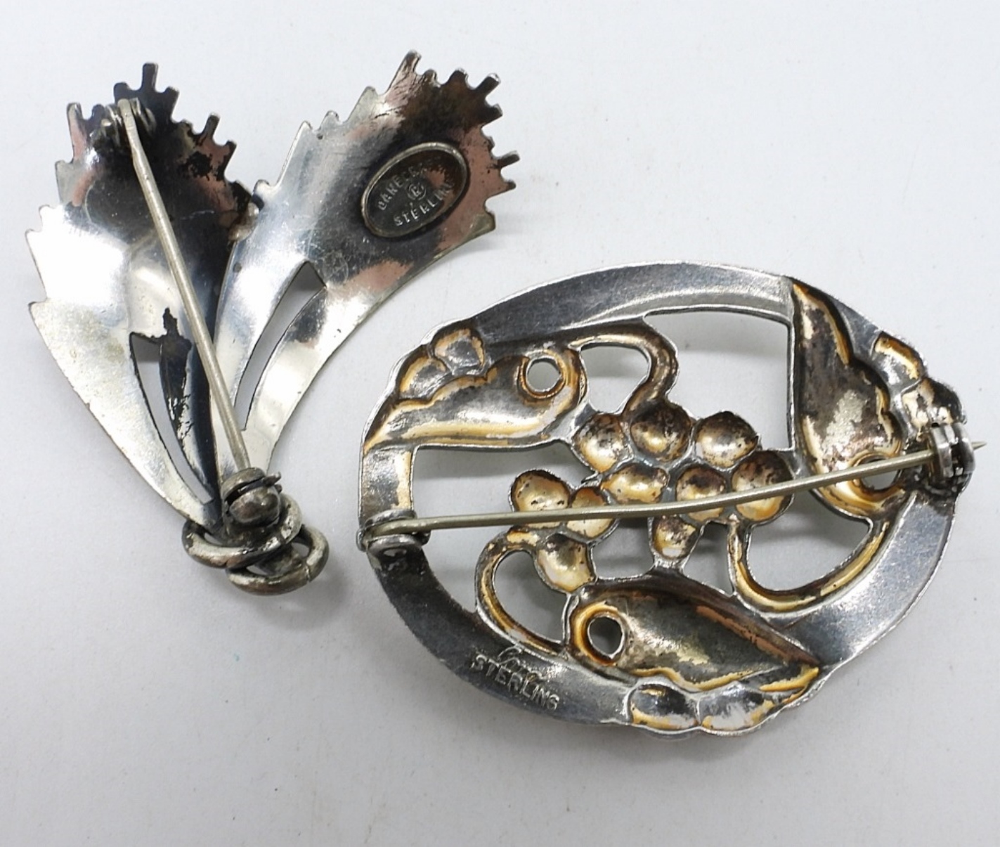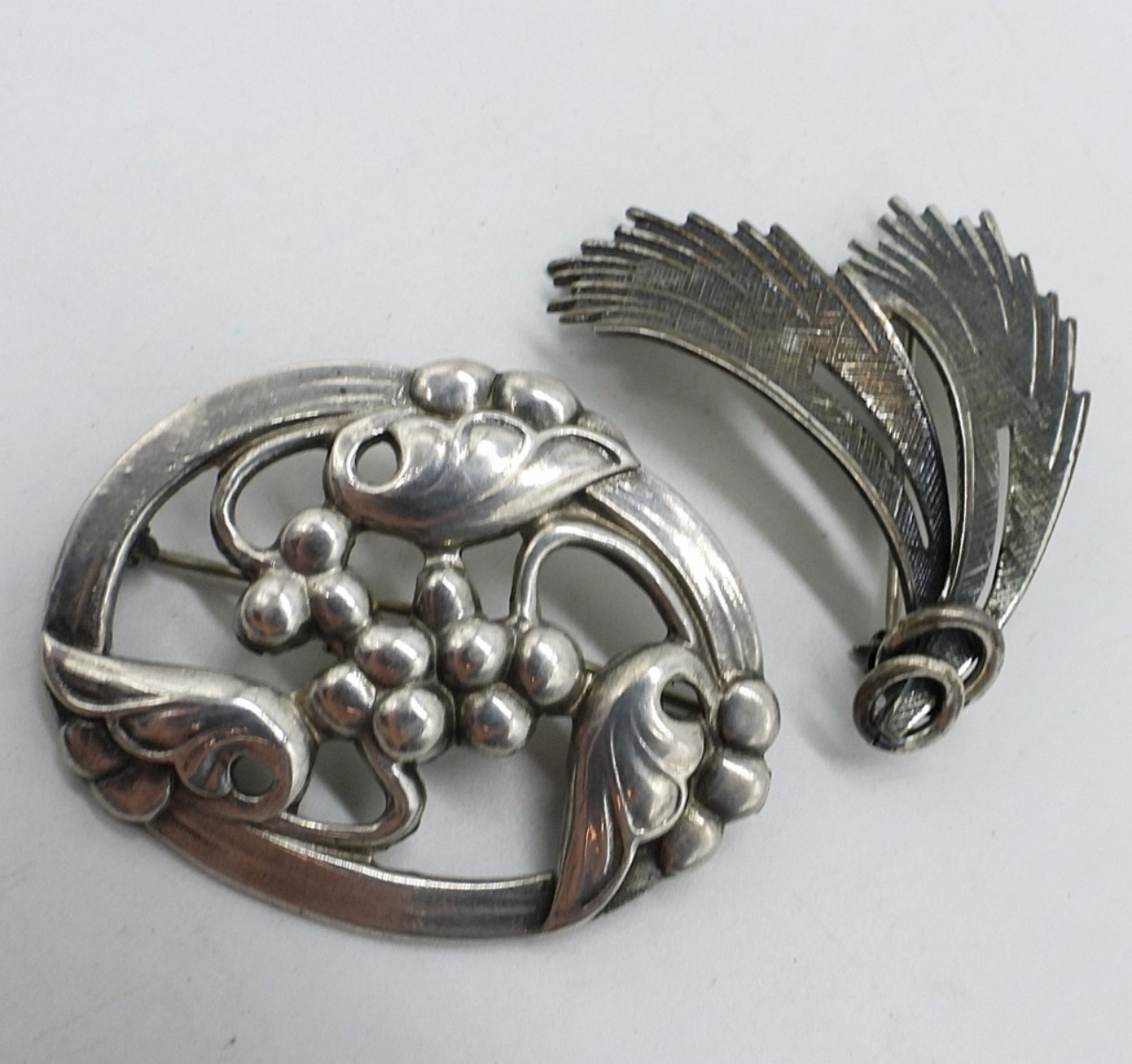 Danecraft leafy brooch, 2″. Coro brooch, 2″ x 1.5″. (10.6 dwt)