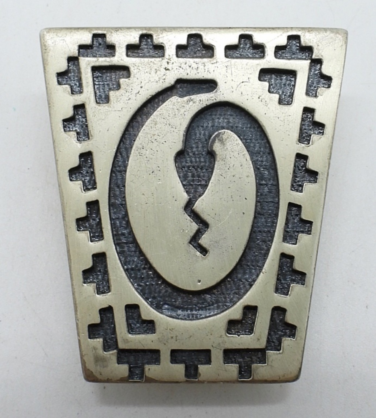 Navajo snake design bolo tie clip. 1.5″ x 2″. See photos for markings. (18.7 dwt)