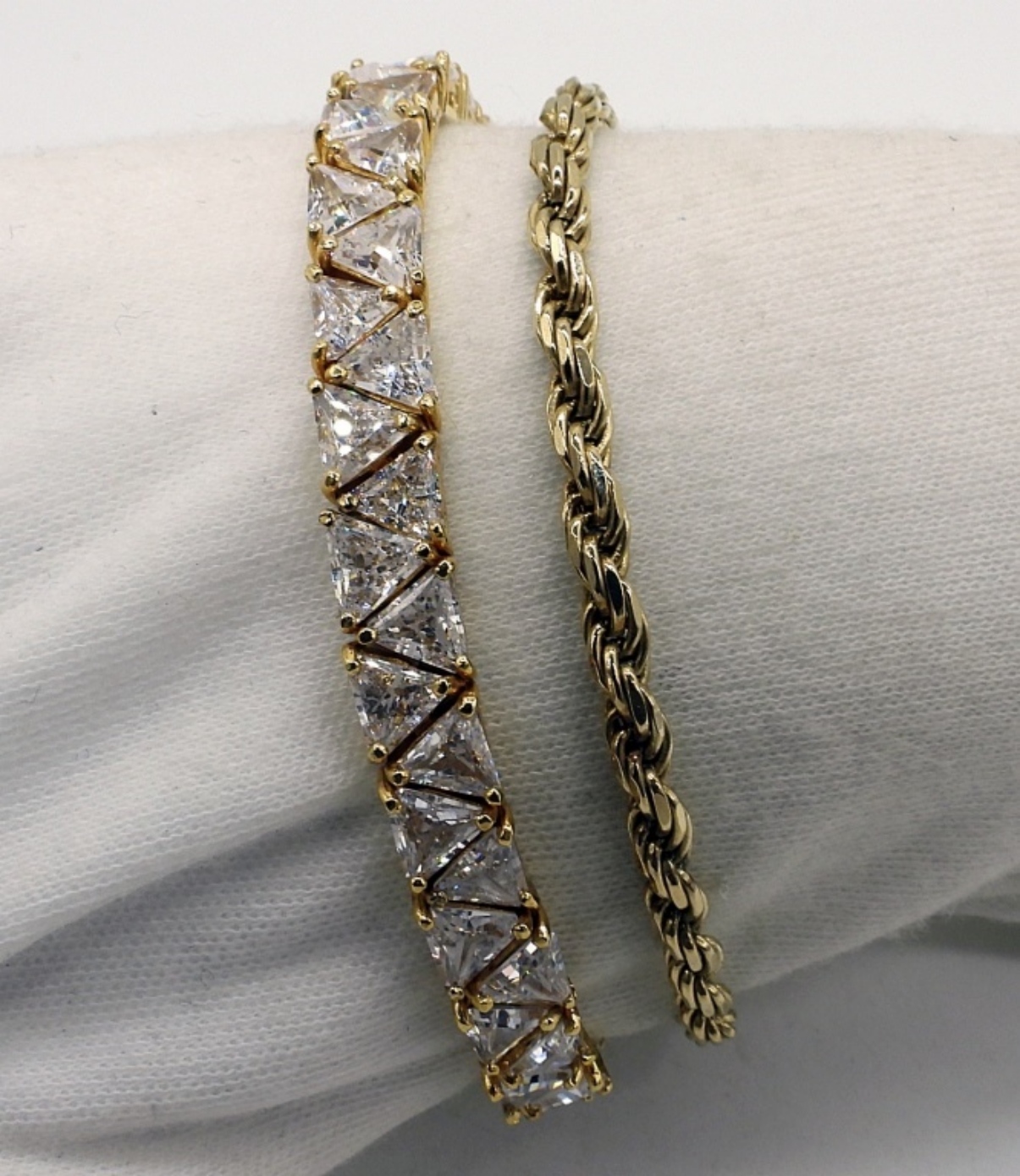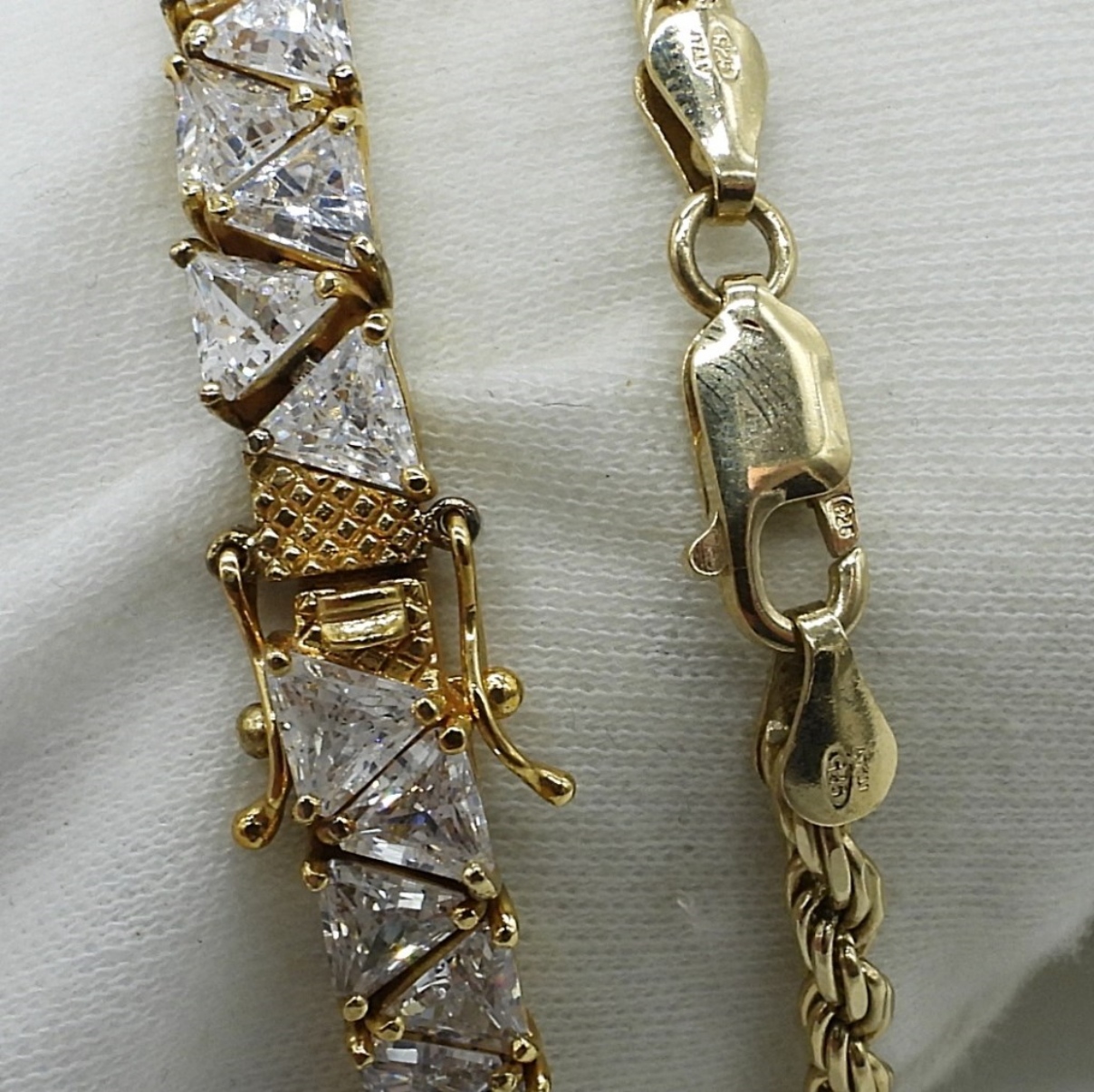 Two sterling, gold tone fashion bracelets. 7″ long. (18.2 dwt)