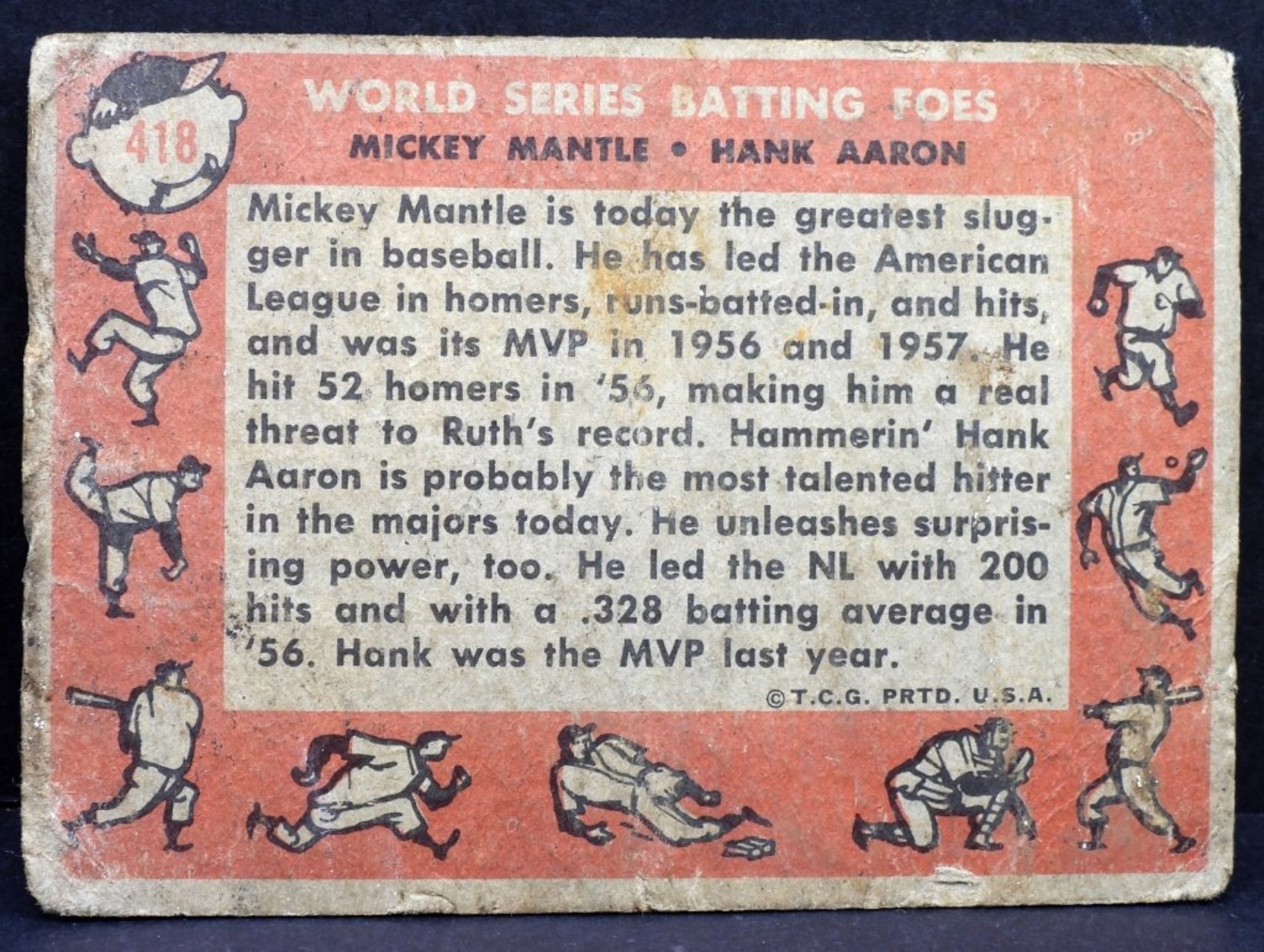 Mickey Mantle and Hank Aaron. Creases and rounded corners. Edges worn down. Poor condition