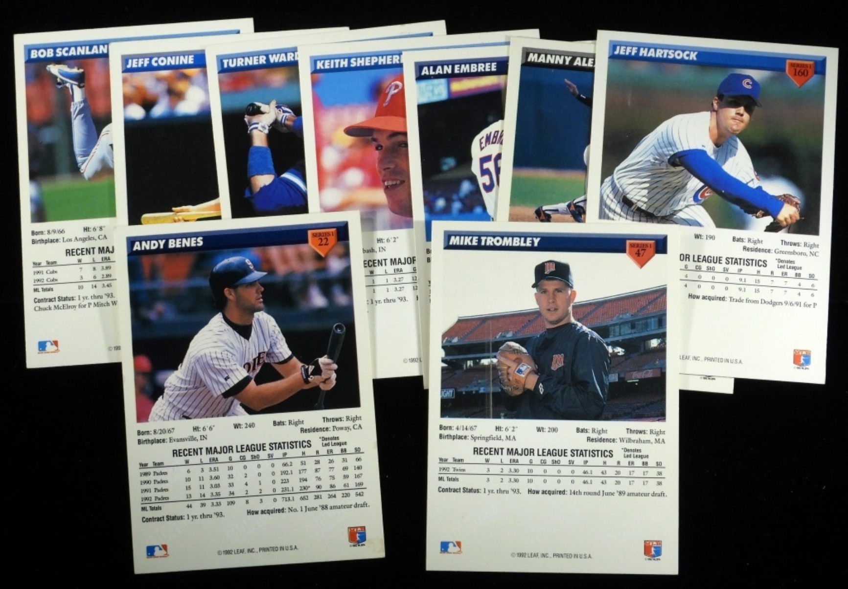 Various conditions. No Duplicates. Including Jeff Conine, Bob Scanlan, Turner Ward and more.