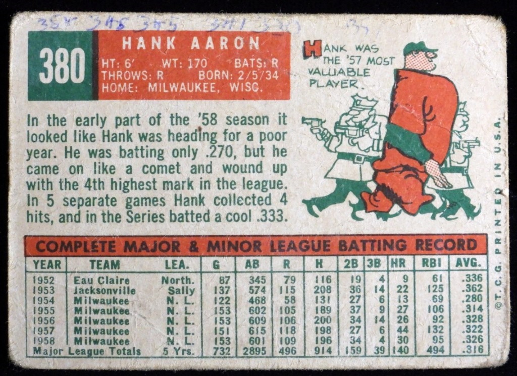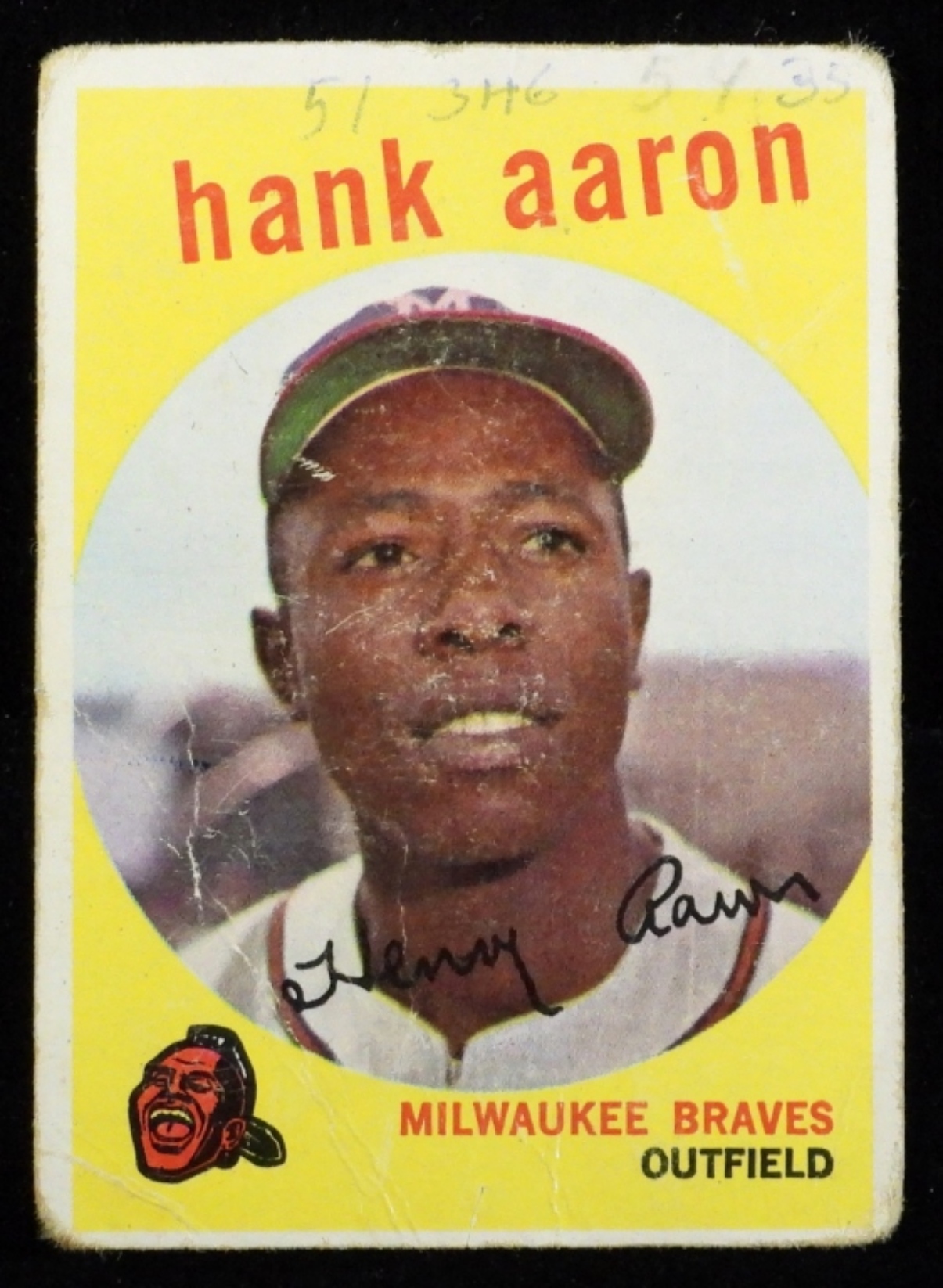 Some pencil writing on the top of the front and top of the back. Rounded corners, decent creasing.