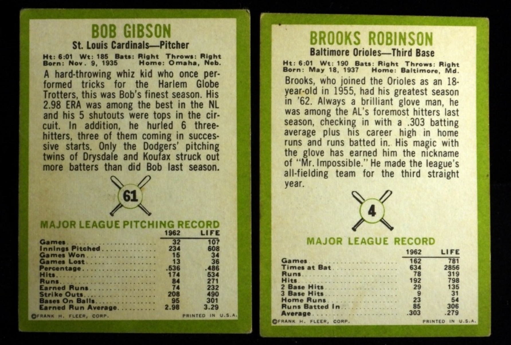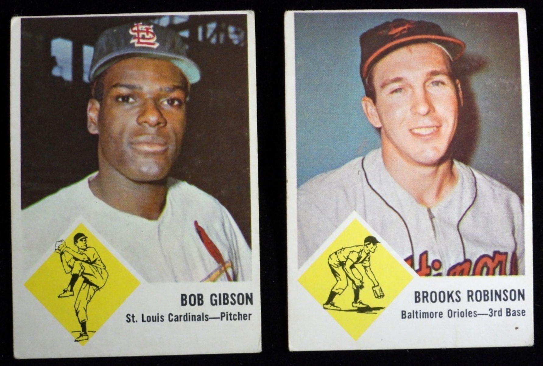 Corners are rounded, no creasing on either cards. Fair condition
