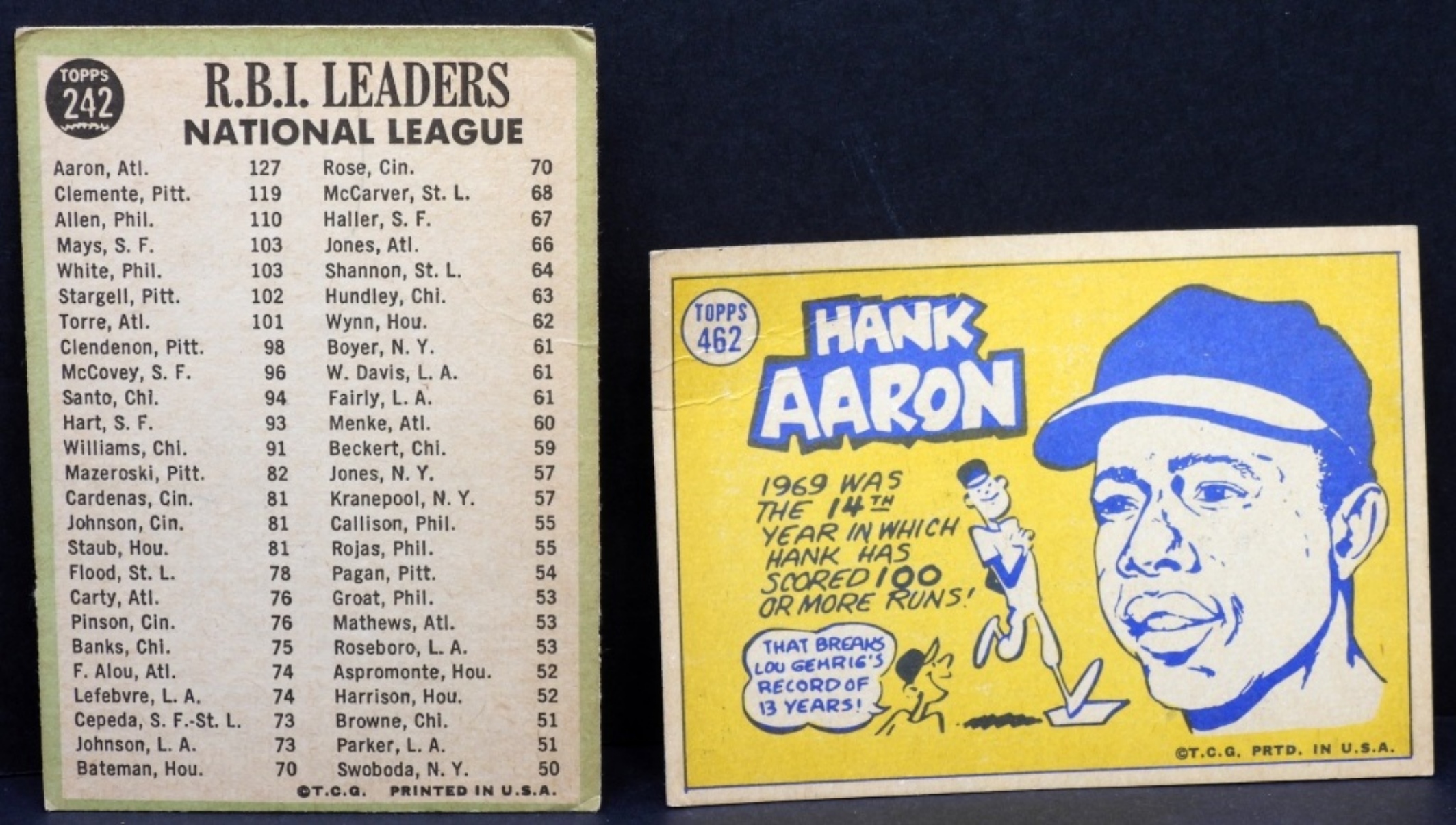 1) 1966 N.League RBI Leaders TOPPS #242 G. 2) Hank Aaron TOPPS #462 VG
