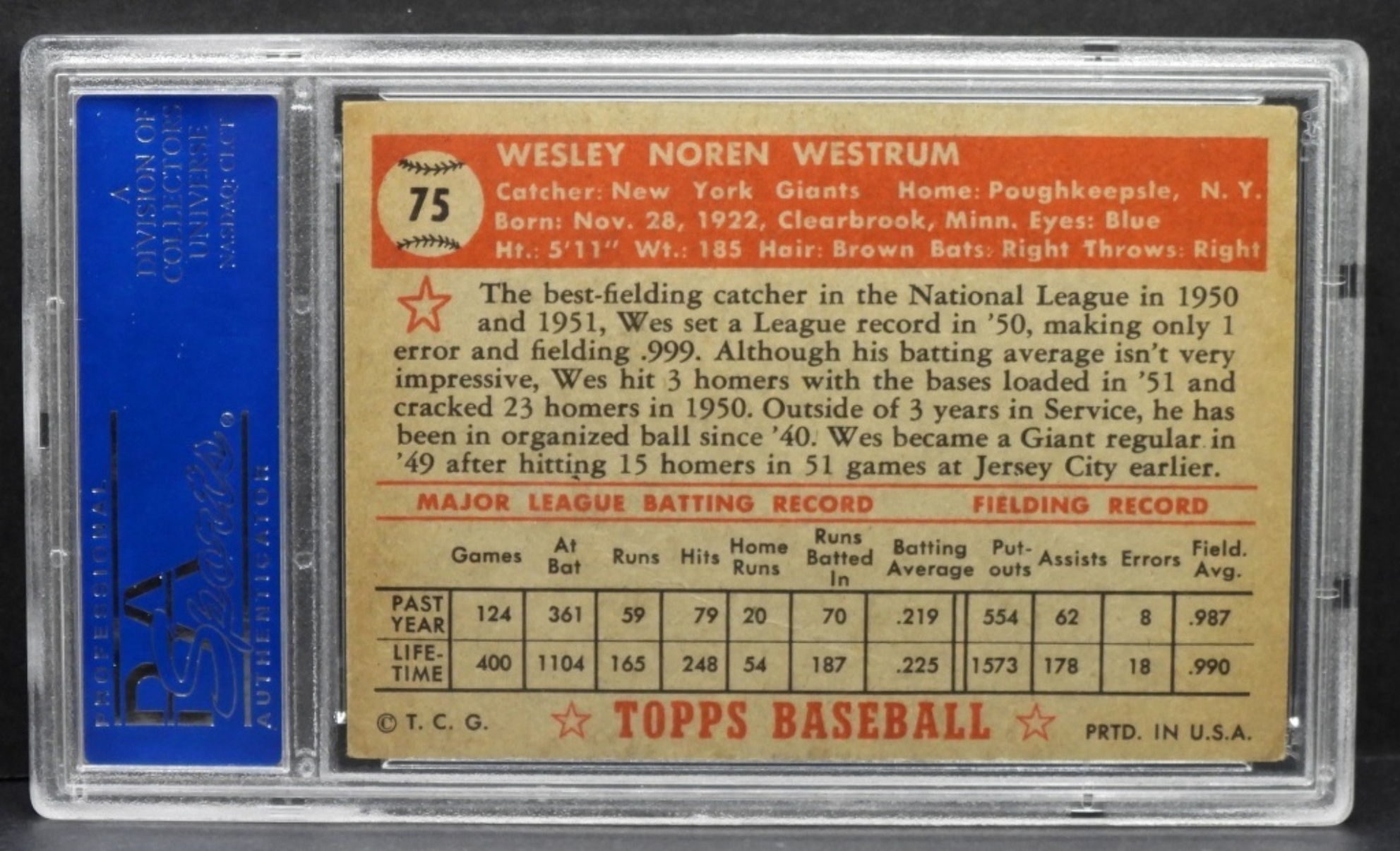 PSA grading of VG-EX 4. #75 TOPPS Wes Westrum