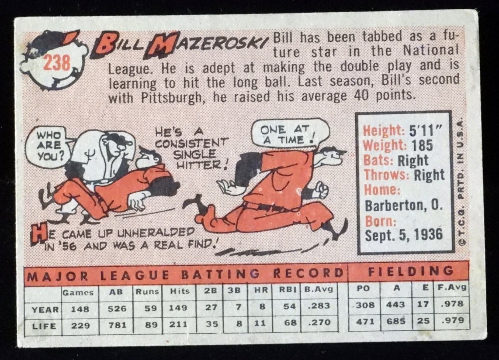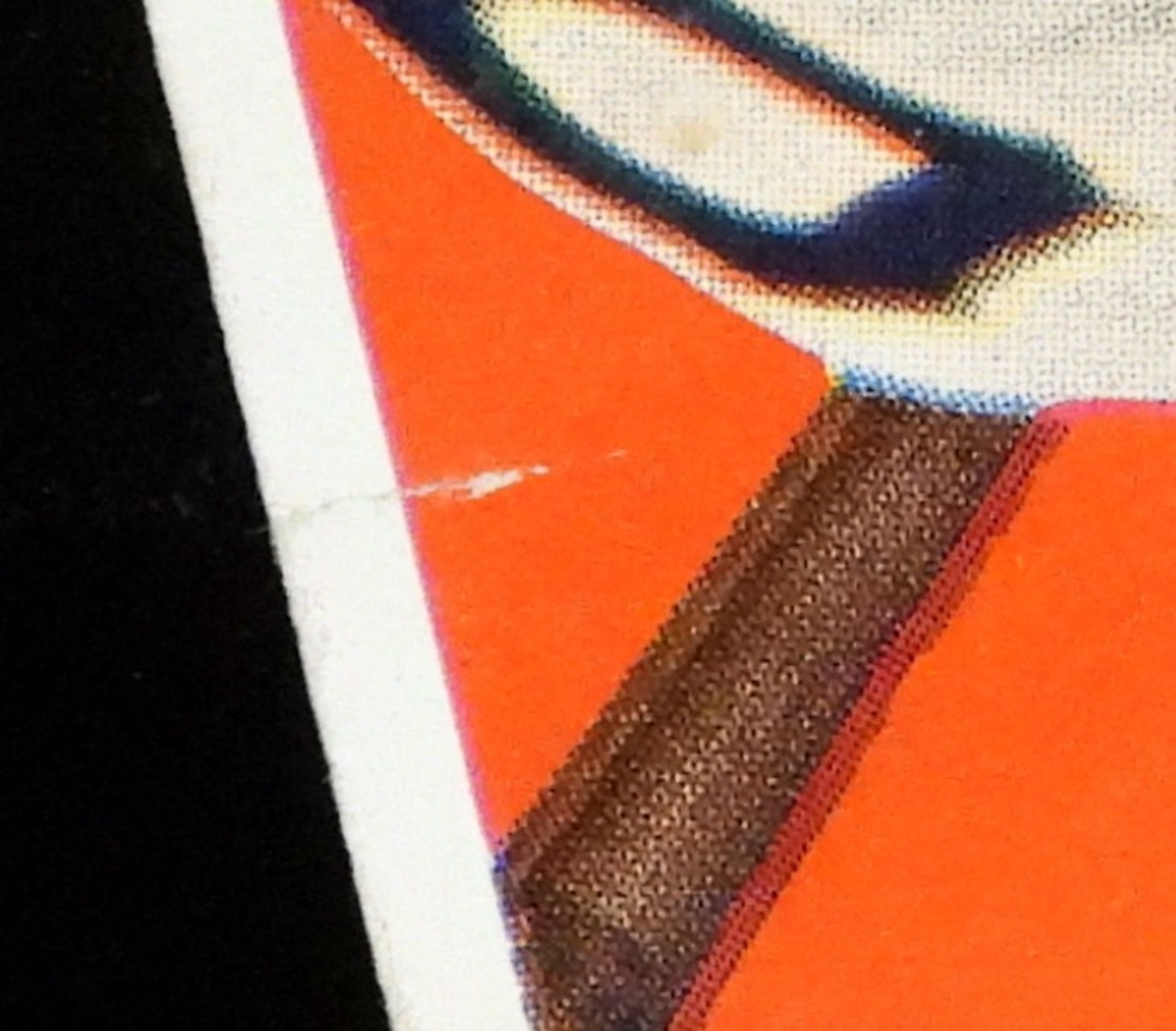 in G/VG condition. Rounded corners, does have a little rip between the bat and shirt.