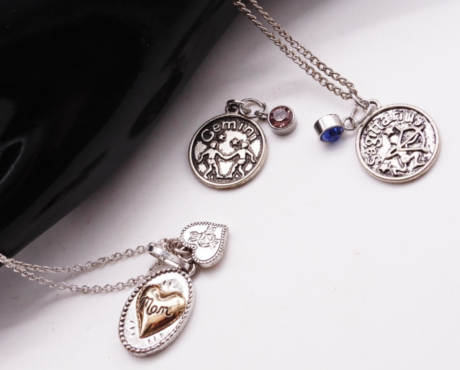 Charm necklaces with extra pendant.