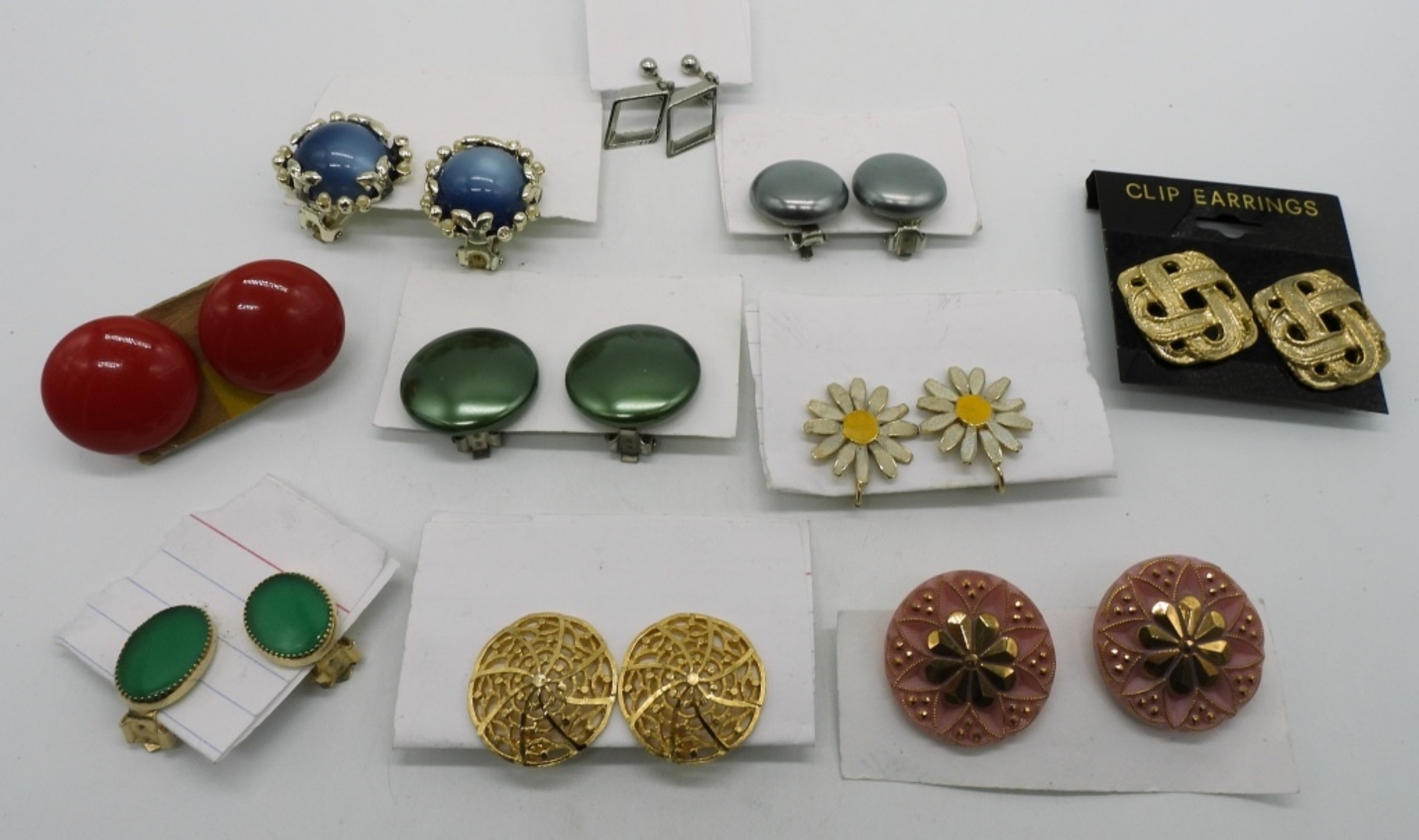 Different kinds such as flowers, diamond shape, and red button-like earrings.