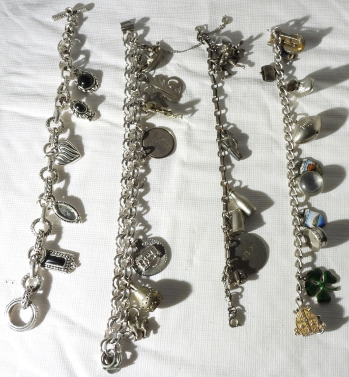 all silver-tone, missing some charms