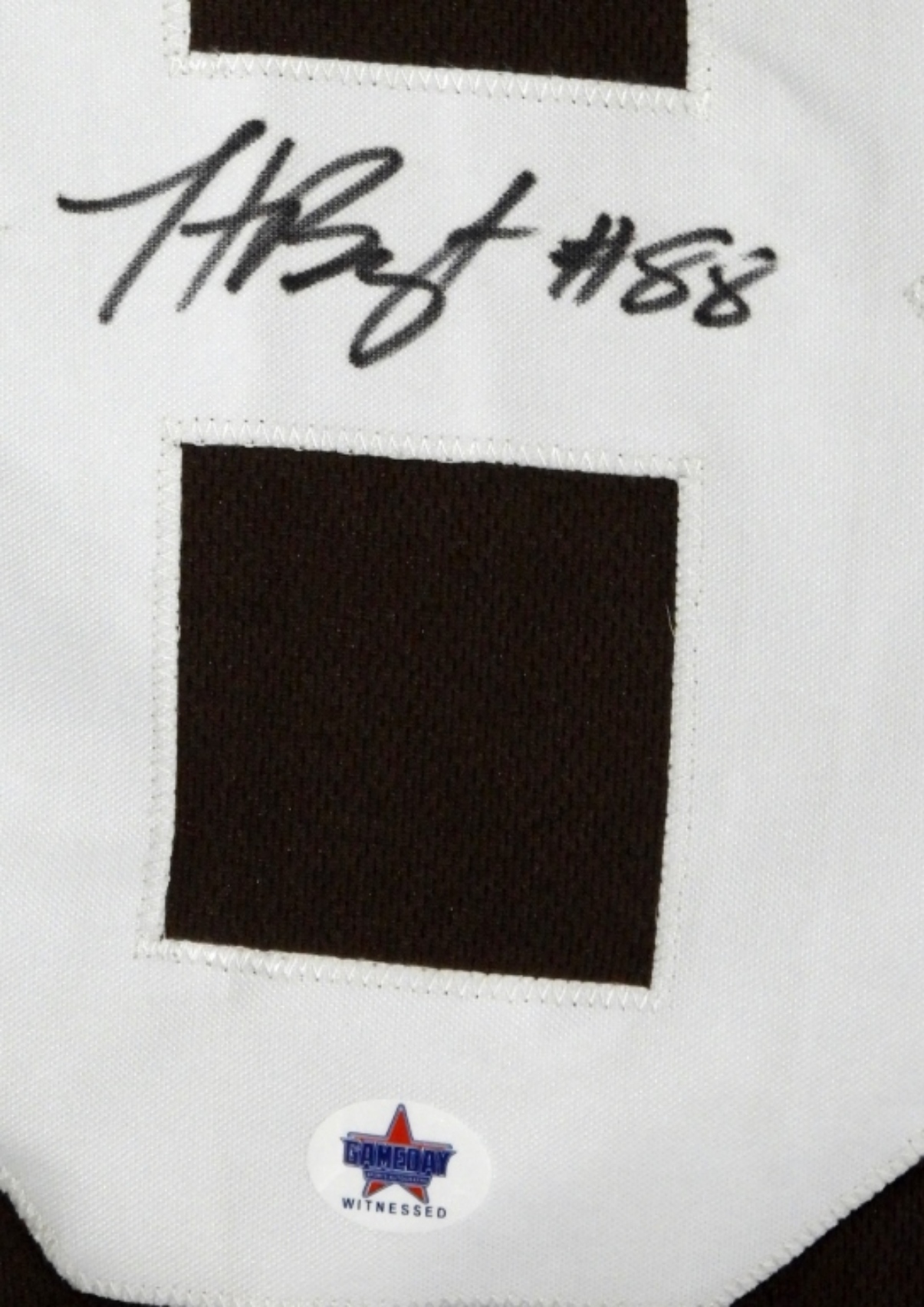 Autographed on the back of #88 Cleveland Browns Jersey. Sticker GAMEDAY Sports Autographs Witnessed. Size XL