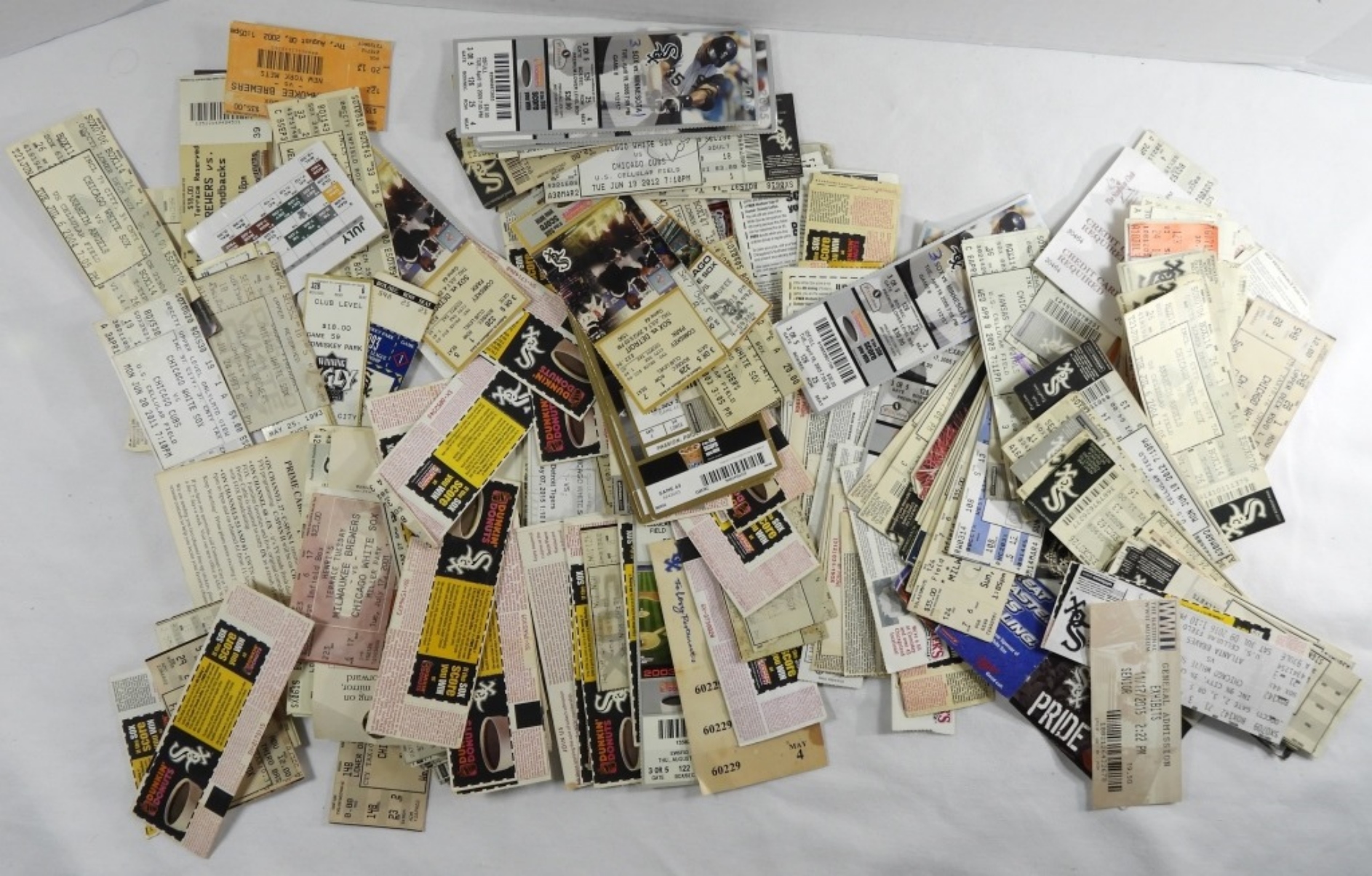 Over 100 tickets for Chicago White Sox. Various conditions.There MAY be some other tickets in there but its MOSTLY Chicago White Sox tickets.