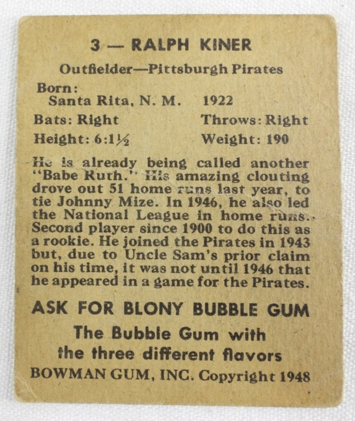 Some creasing across the card, corners are rounded. Fair condition.