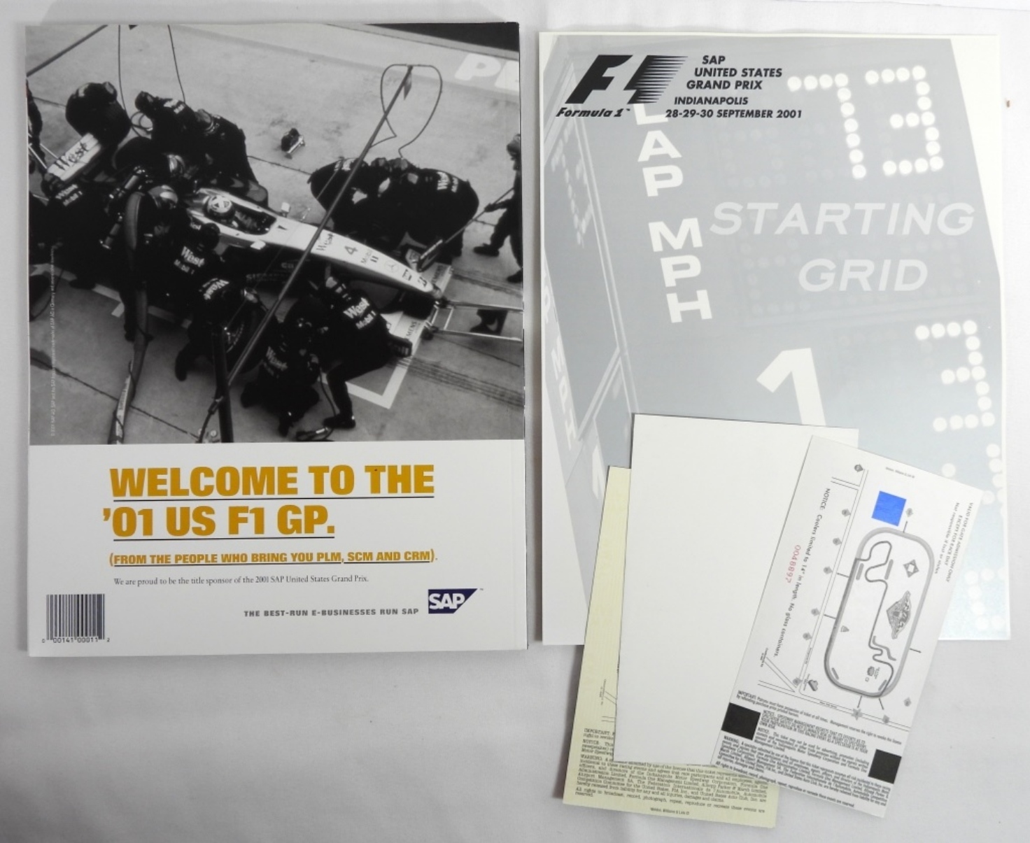 Including: Starting grid, Coupon for starting grid, program, ticket stubs, and a clear case to keep it together