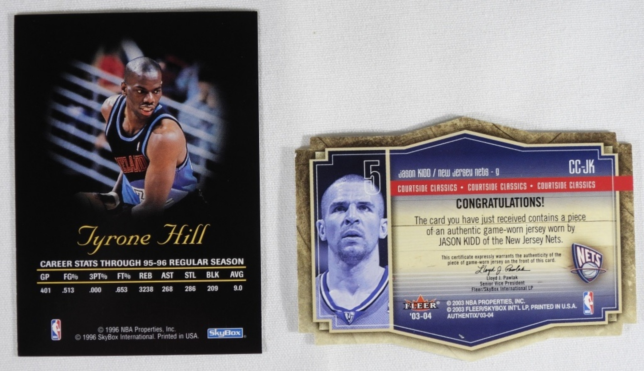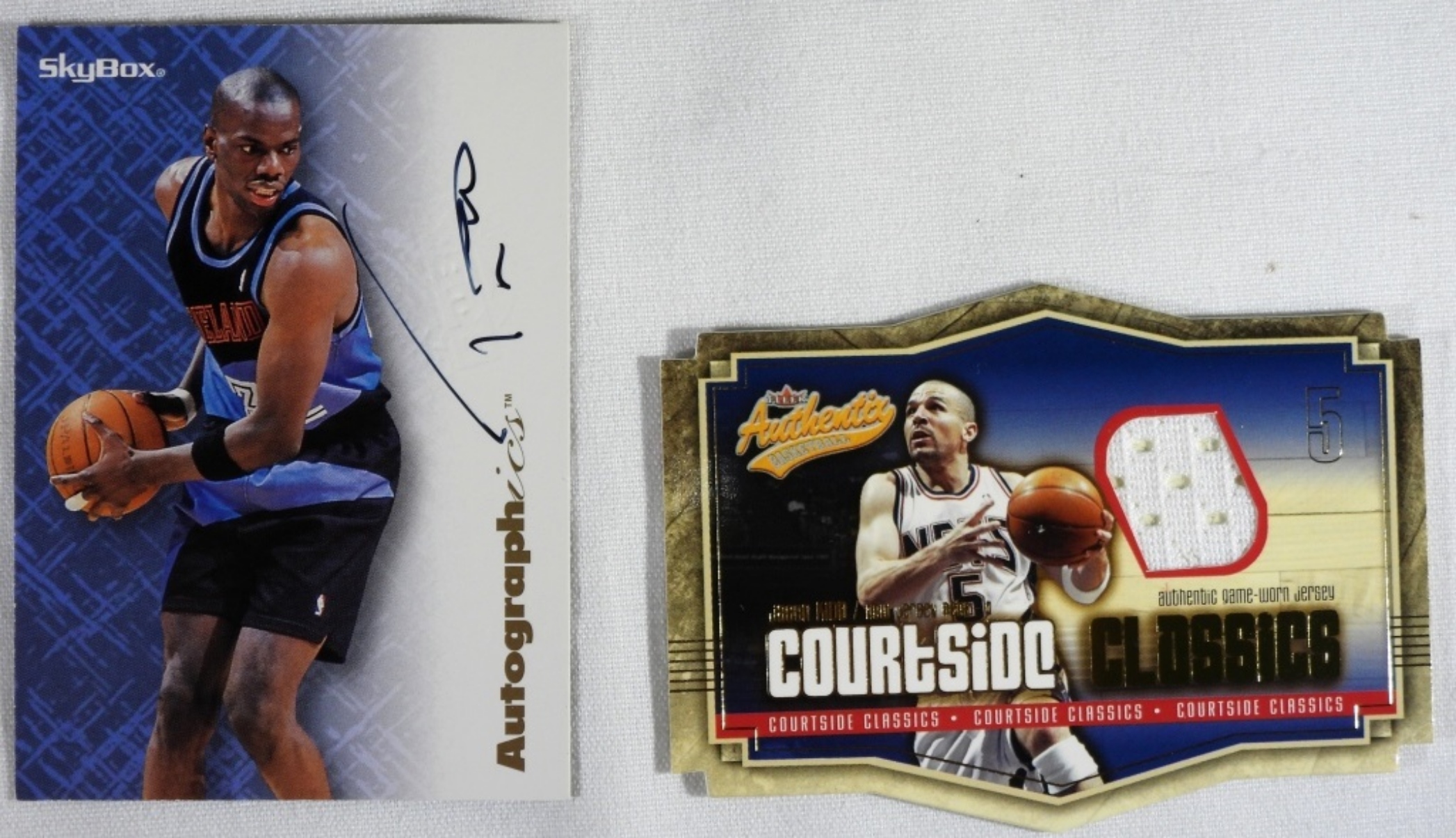 1) Fleer CC-JK Jason Kidd. 2) Autographed 1996 Tyrone Hill Skybox card. (no COA.)