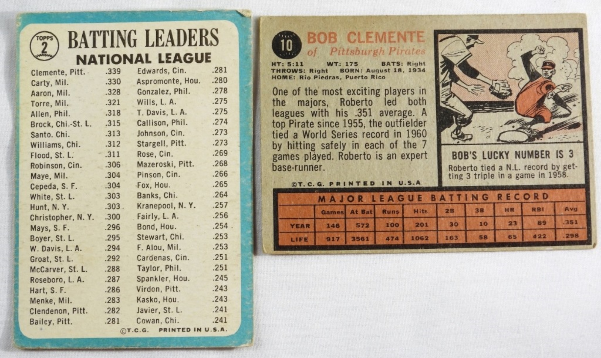 In fair condition, corners are rounded, no creasing and slight wear on the right side of the card in TOPPS #10. batting leaders is in good condition, rounded corners, no creasing.