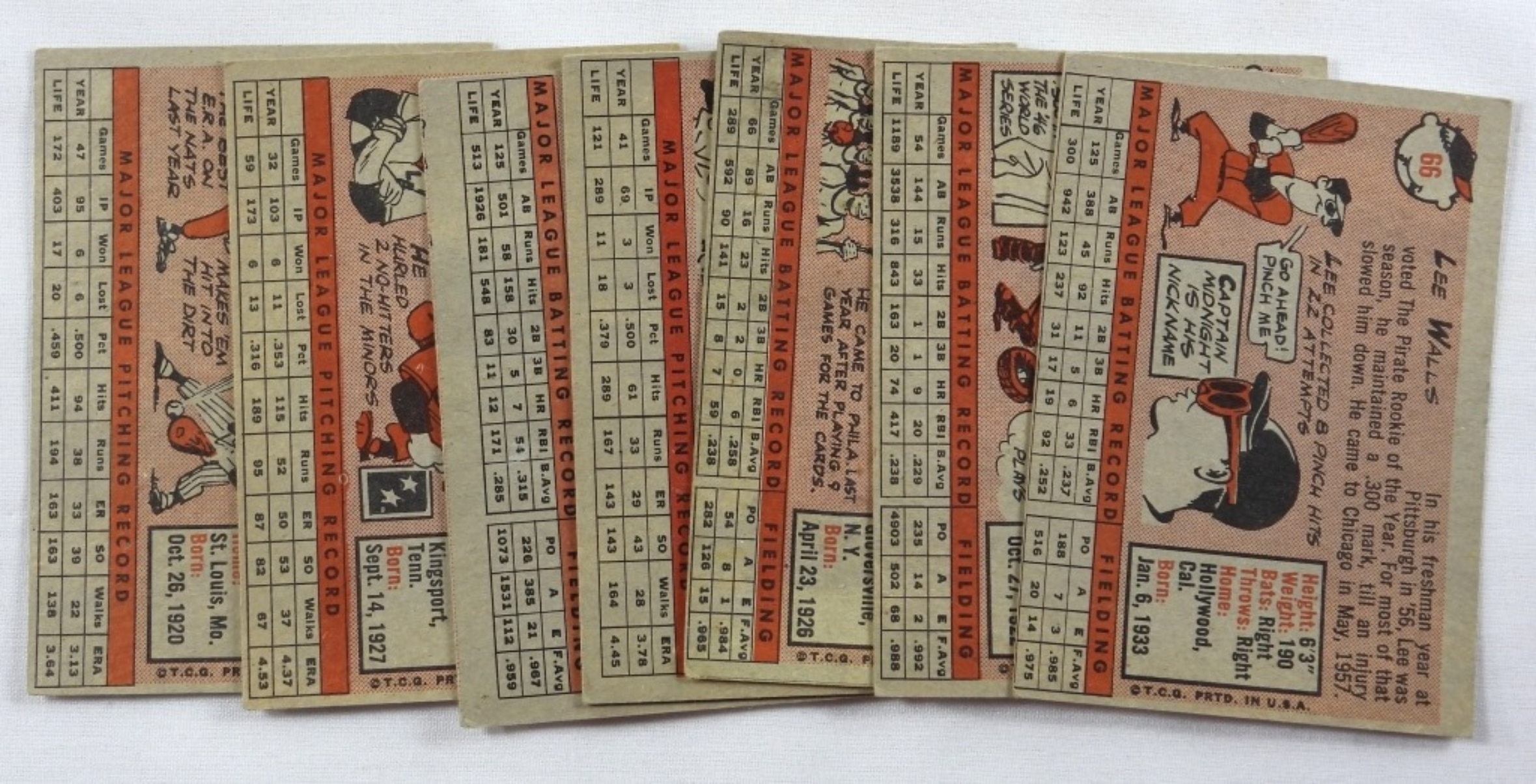 1) #41 Dave Hillman VG. 2) #45 Dick Groat VG. 3) # 46 Lou Sleater VG. 4) #48 Chuck Harmon G. 5) #51 Del Rice G. 6) #66 Lee Walls VG. 7) #72 Bud Byerly VG.