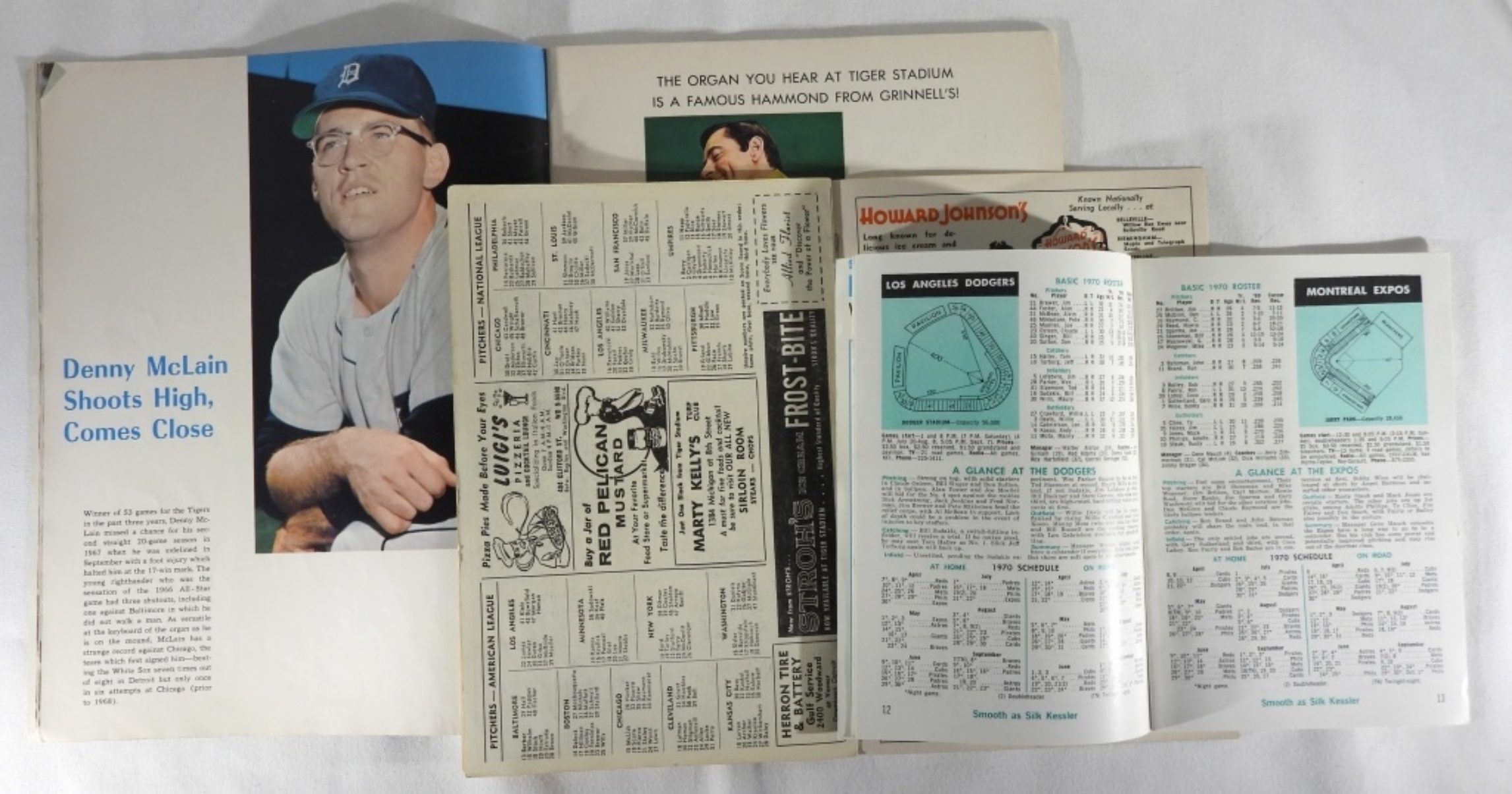 1) 1968 Tigers Official Yearbook. 2) 1961 Detroit Tigers Official Souvenir Scorebook. 3) Kessler Baseball Fan Guide 1970.