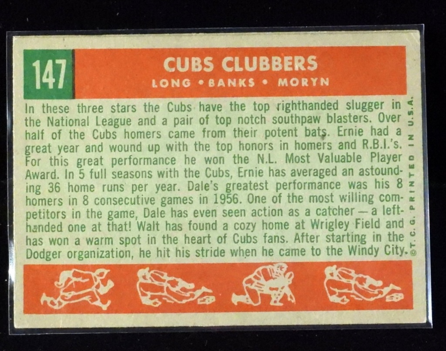 G/VG condition. #147 Cubs Clubbers (Long, Banks, Moryn), color fade, and some creasing. #156 Ace Hurlers (Pierce and Roberts) rounded corners.