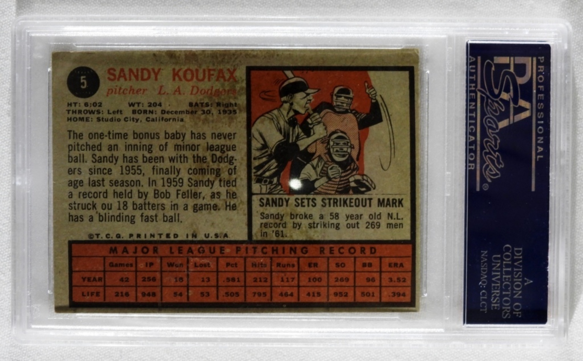 PSA 1962 TOPPS Sandy Koufax #5 VG-EX 4
