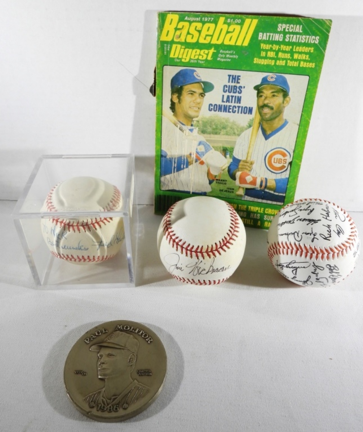 Fred Parker, and Jim Hickman signed baseballs, facsimile 1980s Cubs baseball, no COAs, 1995 Oakland Athletics tickets, 4 signed photos with hologram tags, and more