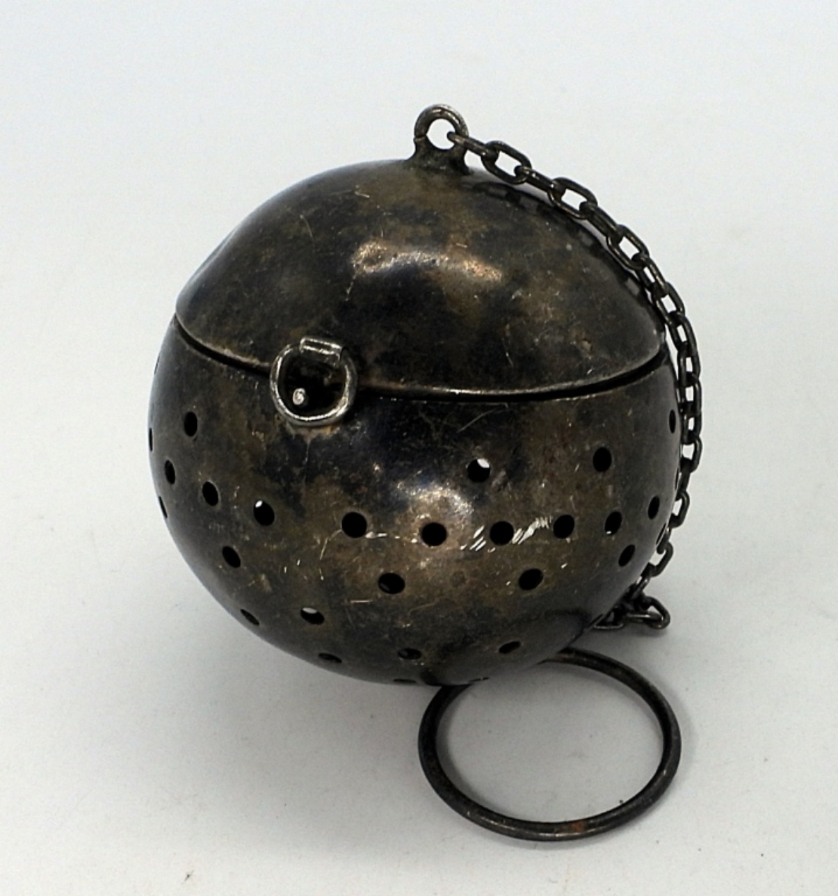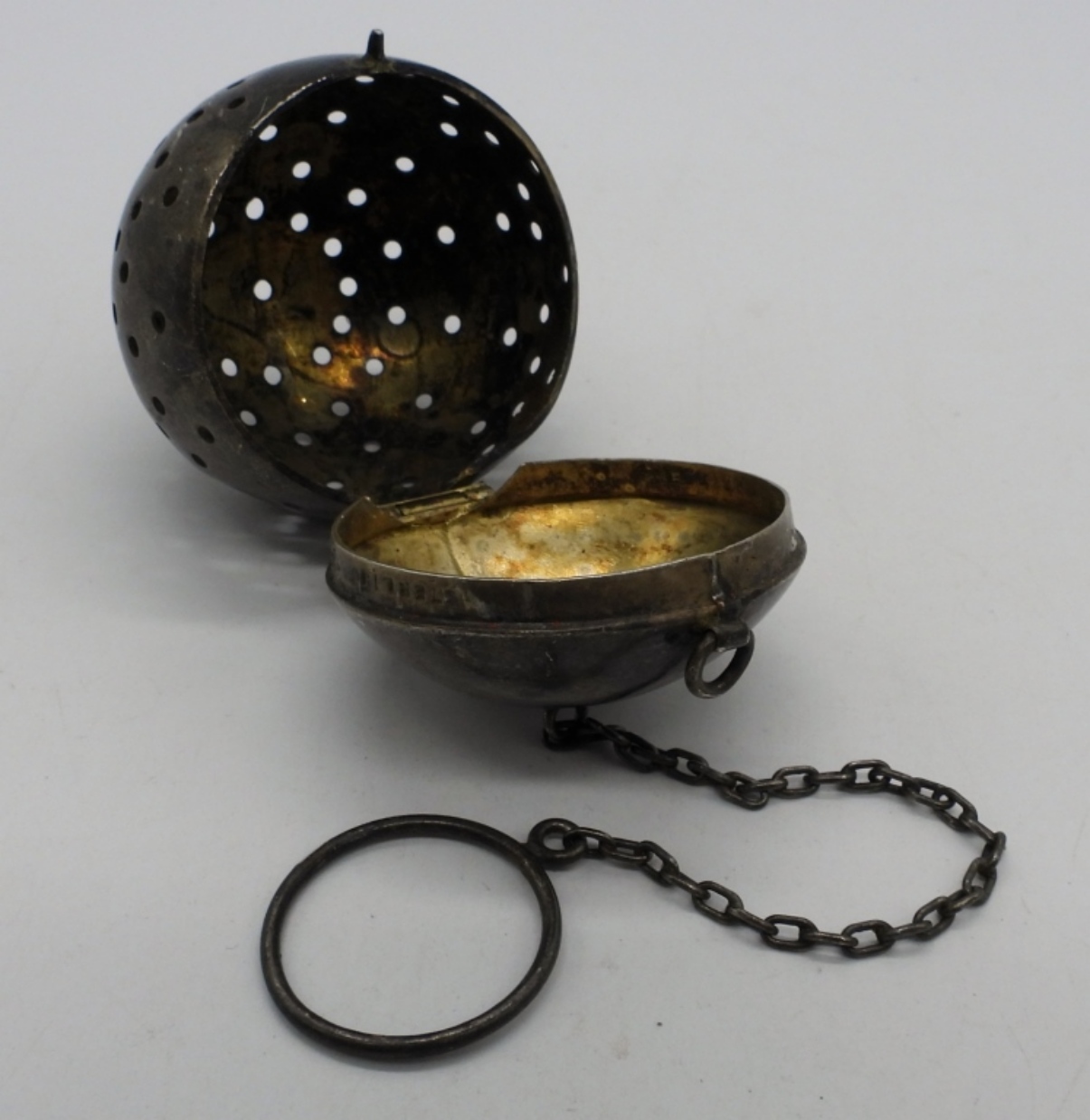 Vintage sterling tea ball, 5.5″ long. (13.2 dwt)