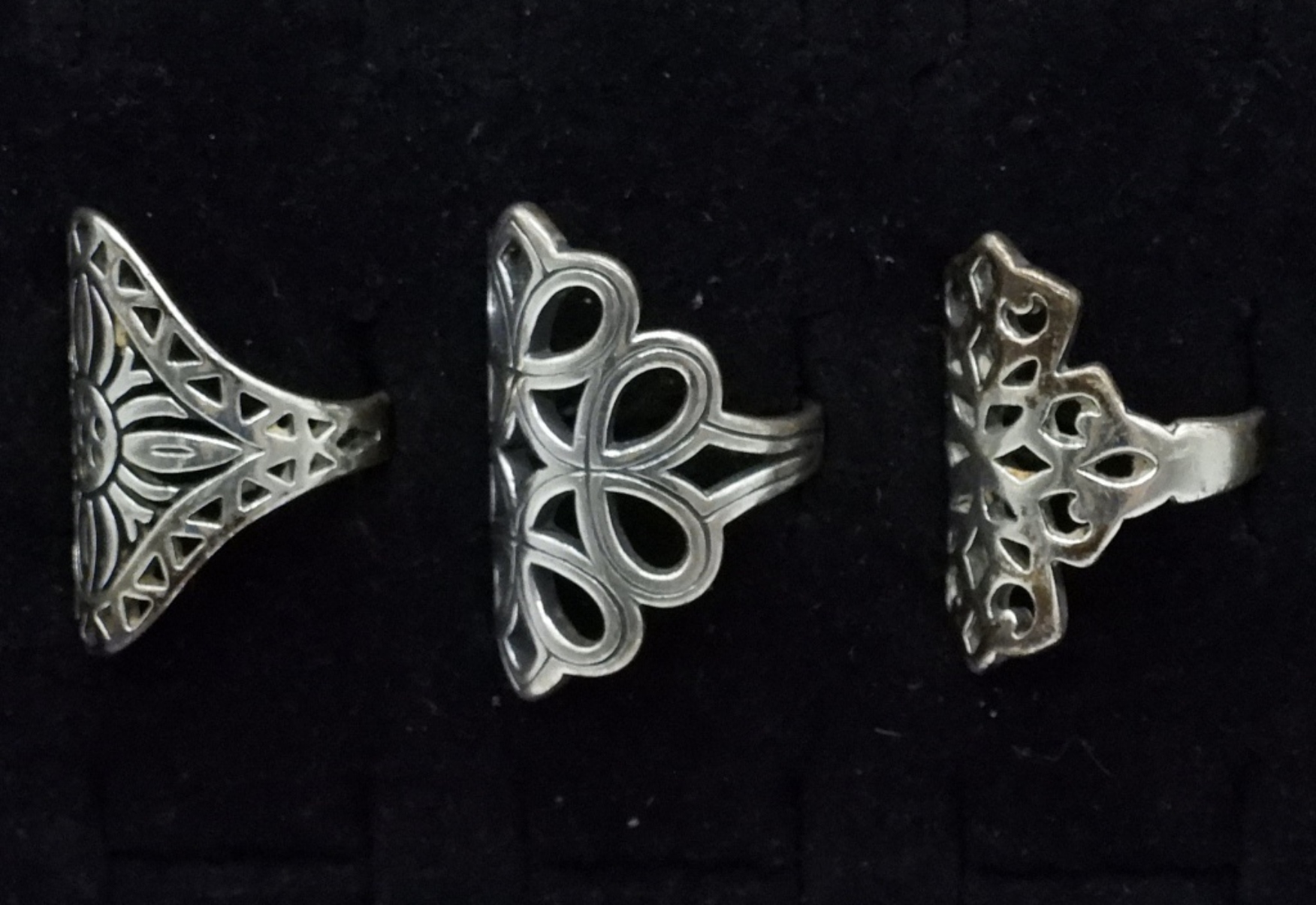 Three sterling fashion rings, sizes 7 & 8. (16.1 dwt)