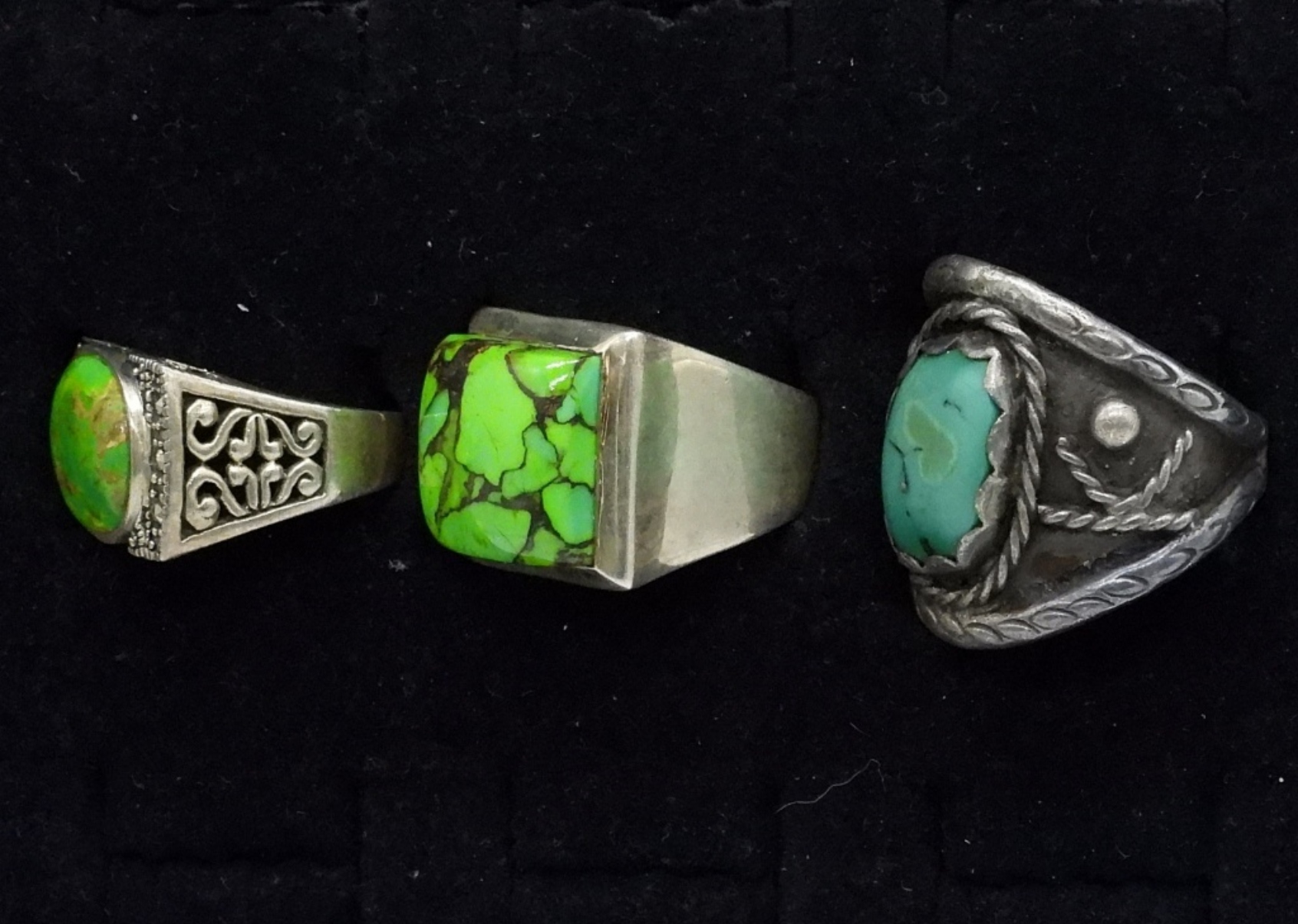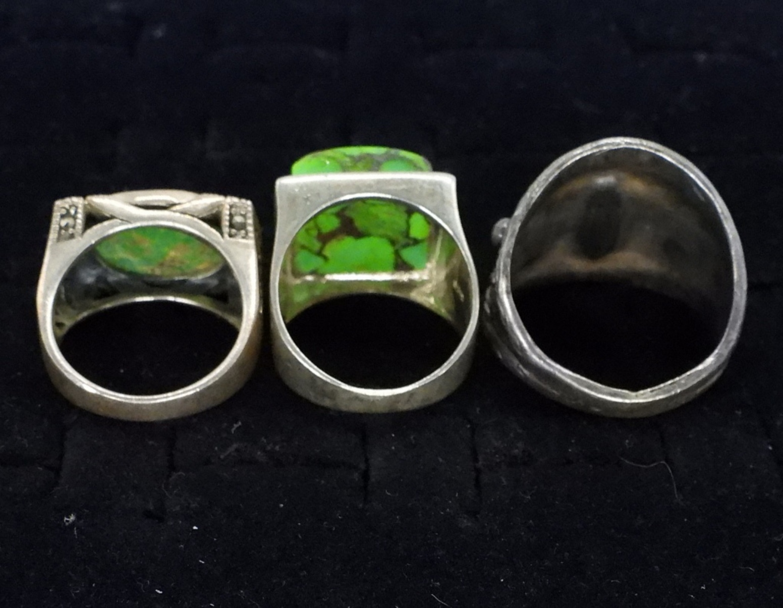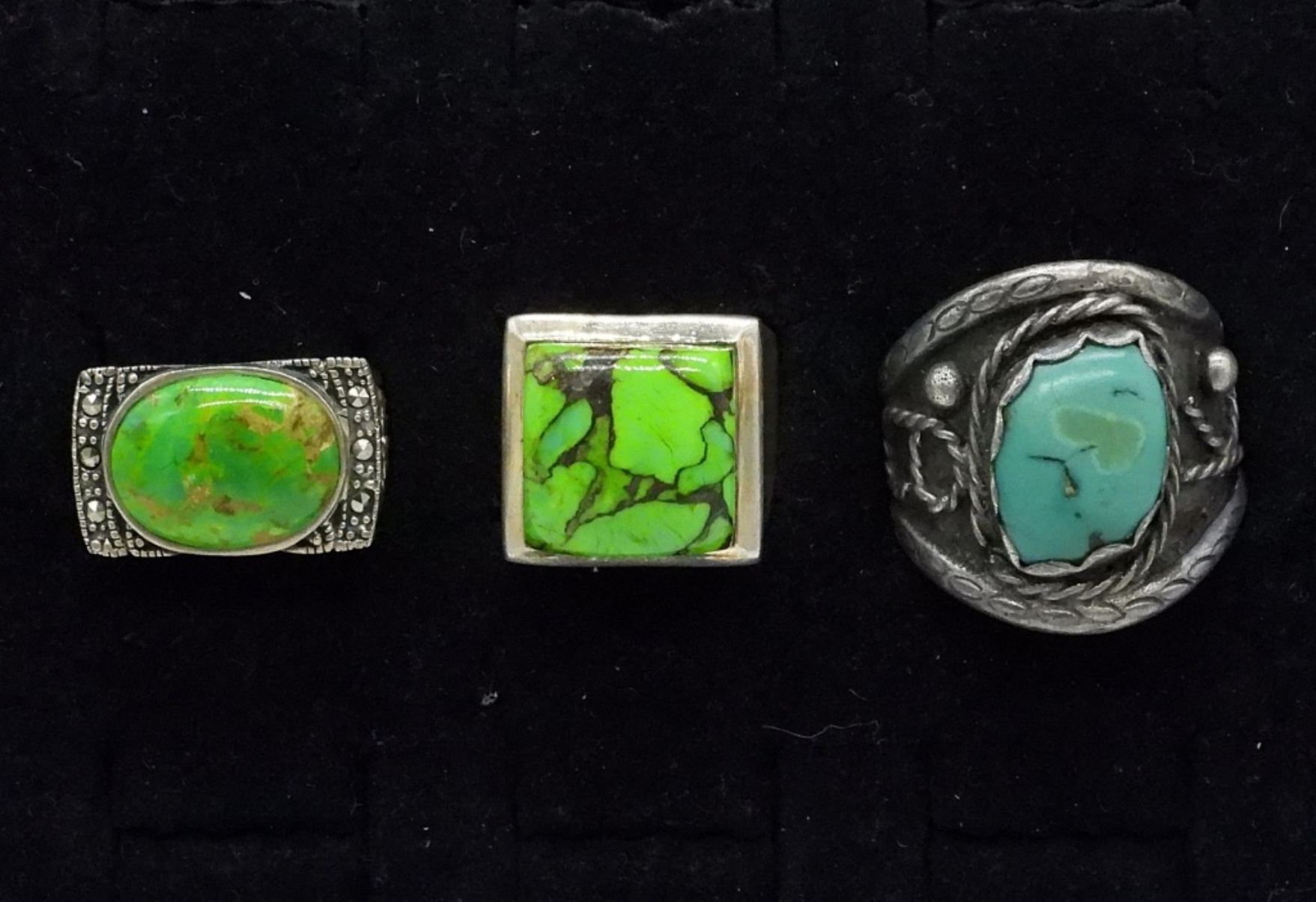 Three sterling Green Turquoise rings, sizes 7, 8, 9. (15 dwt)