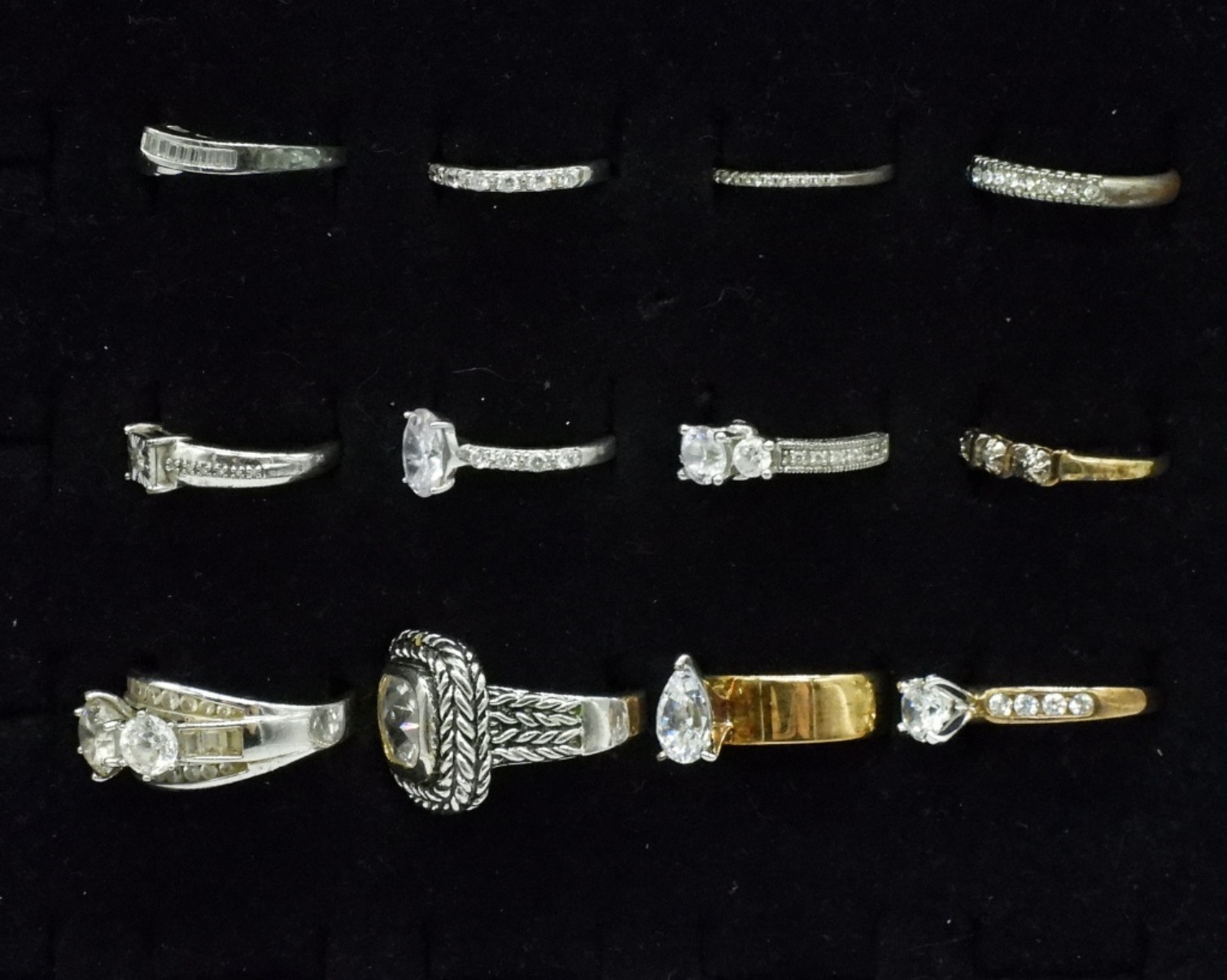 Twelve bridal style sterling rings. Sizes 5-10 (33 dwt)