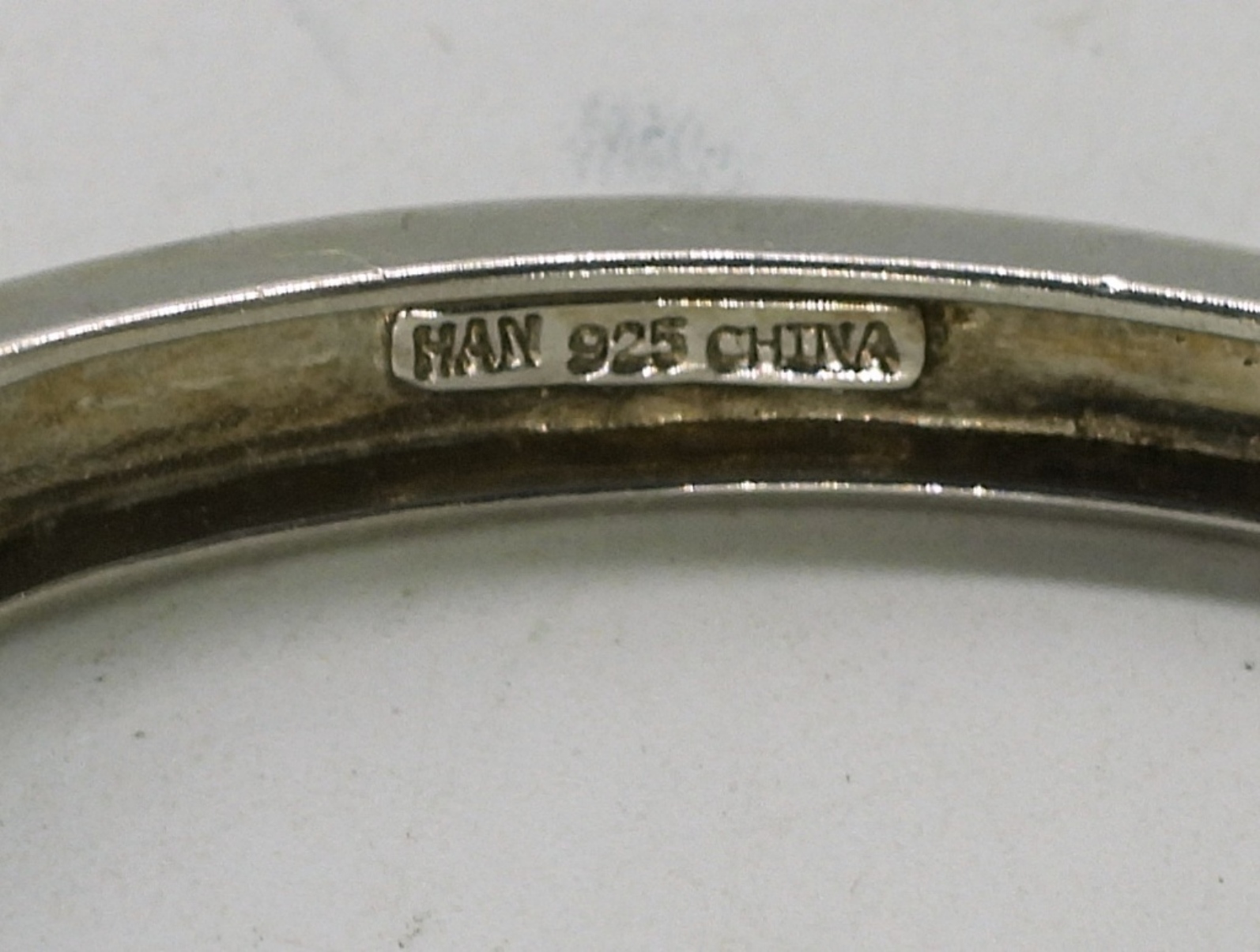 Simulated diamond, sterling jewelry. Necklace is 18″. Hinged Oval Bangle Bracelet. (15.7 dwt)